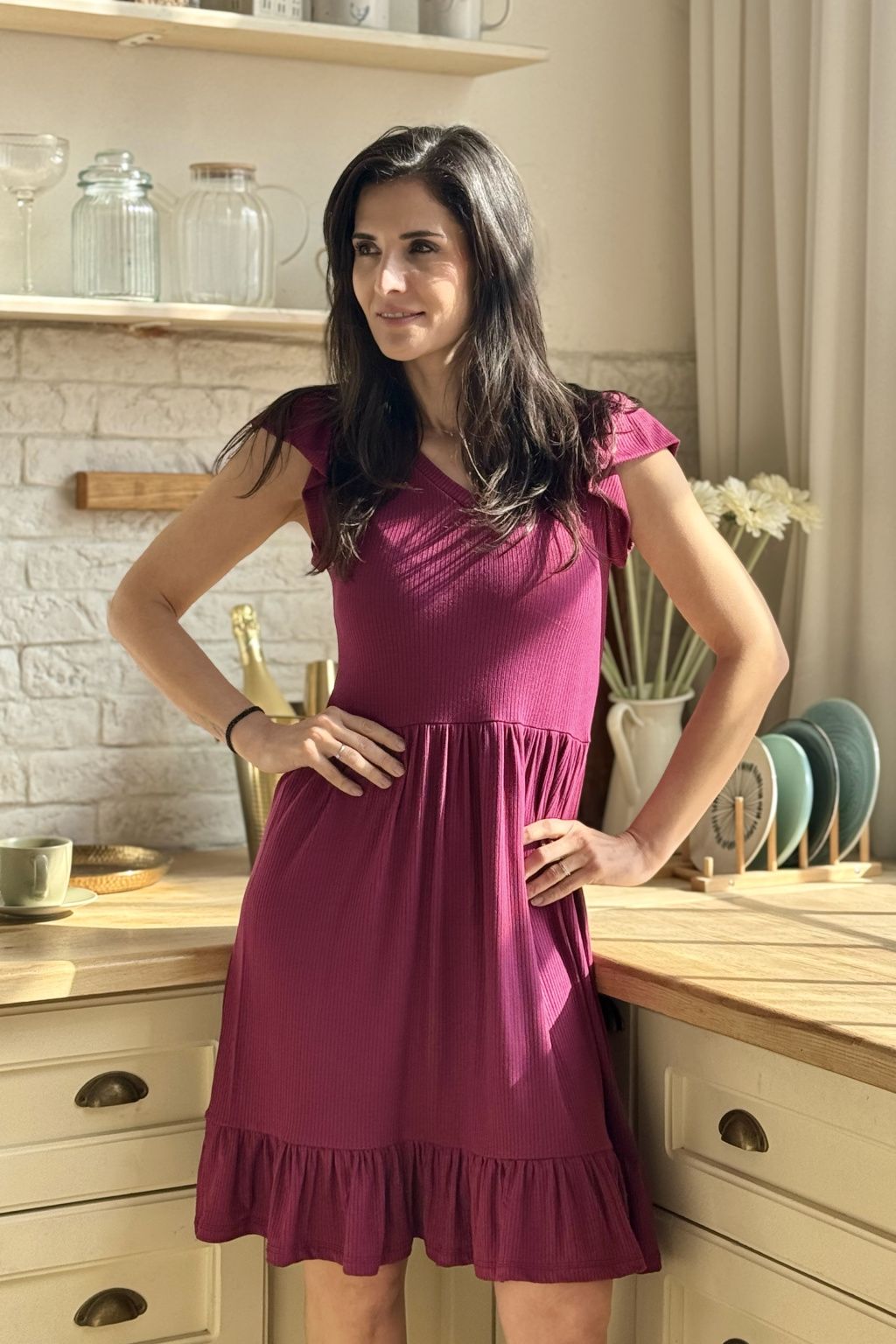 Tencelové šaty ze žebrovaného tencelu, které jsou jemné, splývavé a příjemné na nošení. Doplněné o krásný detail v podobě řaseného rukávku a volánku na sukni, který jim dodává ženský a hravý nádech. Díky volbě výstřihu a délky si je přizpůsobíte podle sebe.