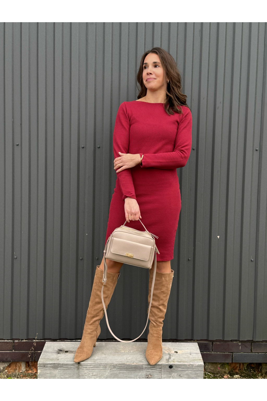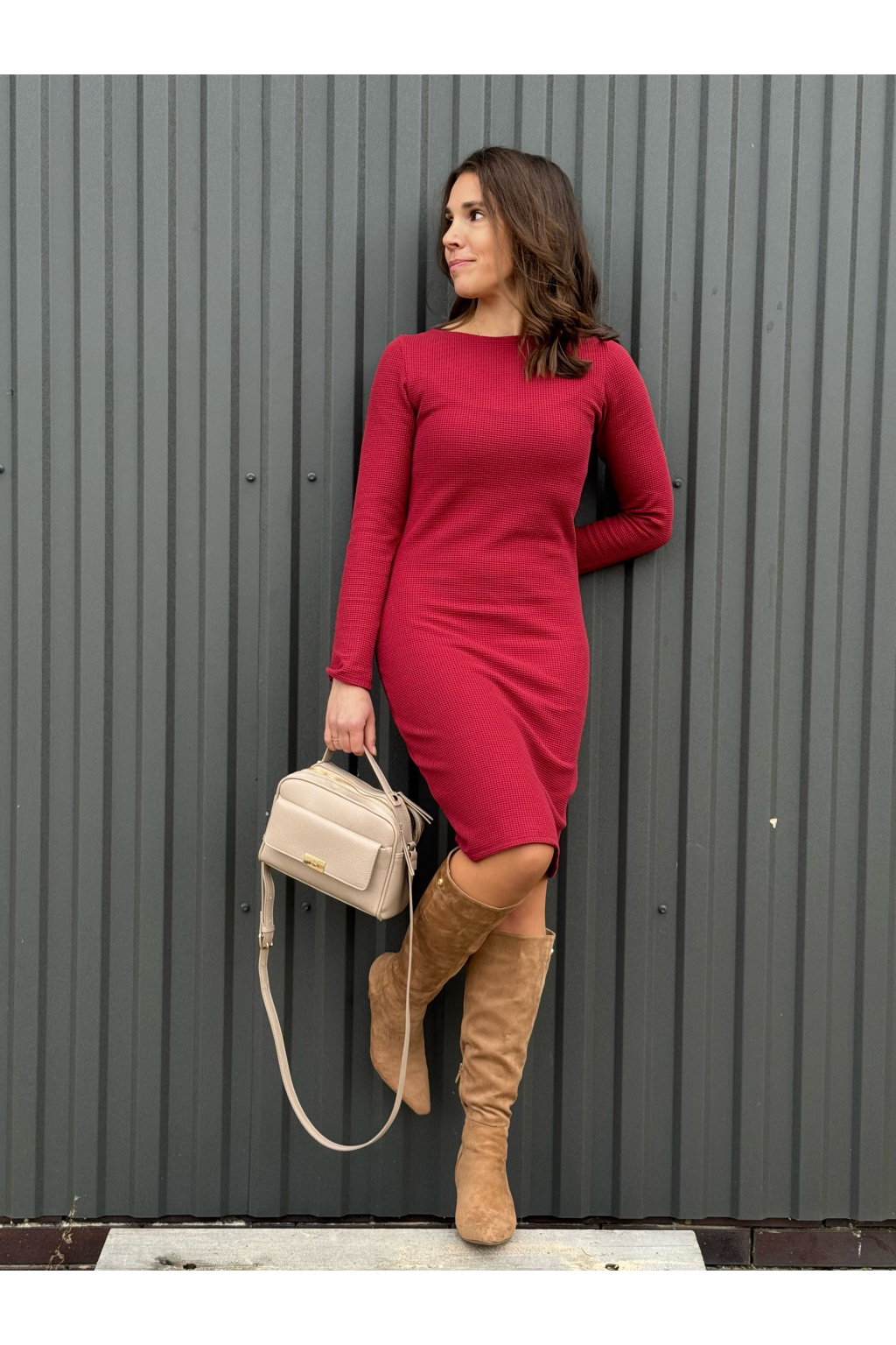 Vaflové bio bavlněné úzké šaty - Zarina - červená - krátké / midi