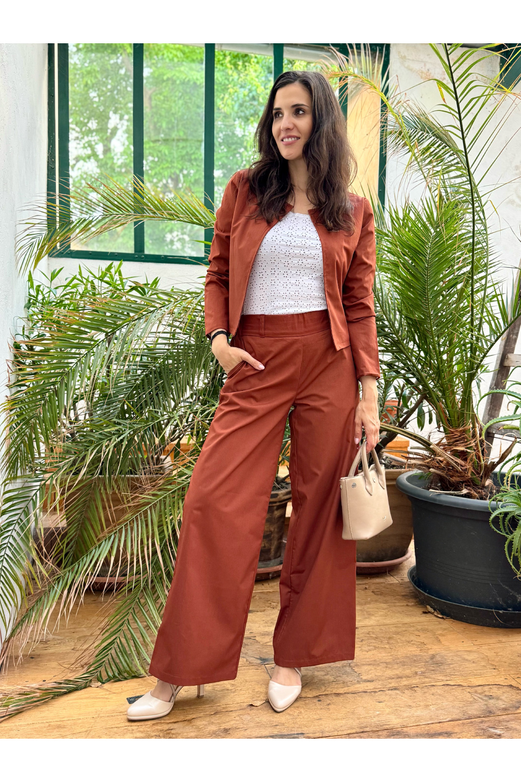 Bio bavlněné široké kalhoty - dlouhé - cihlová