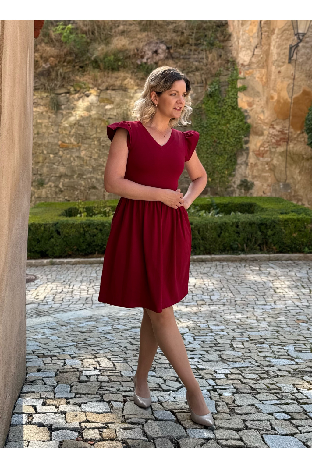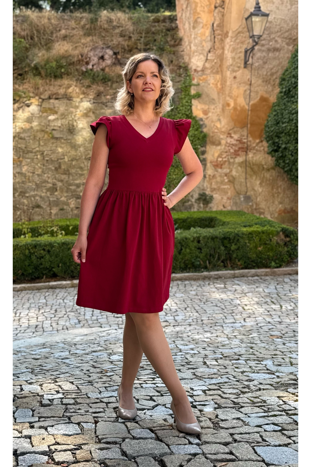 Bio bavlněné šaty Aria - bordó - krátké / midi