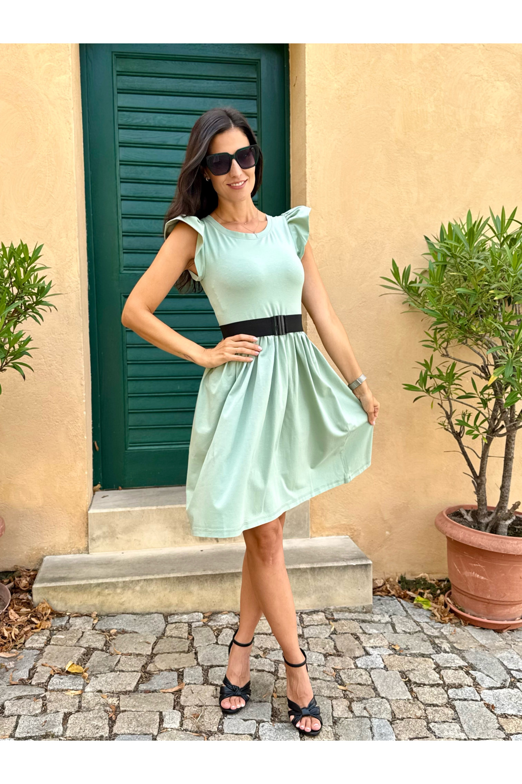 Bio bavlněné šaty Aria - sage green - krátké / midi
