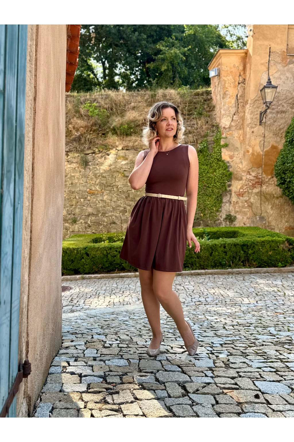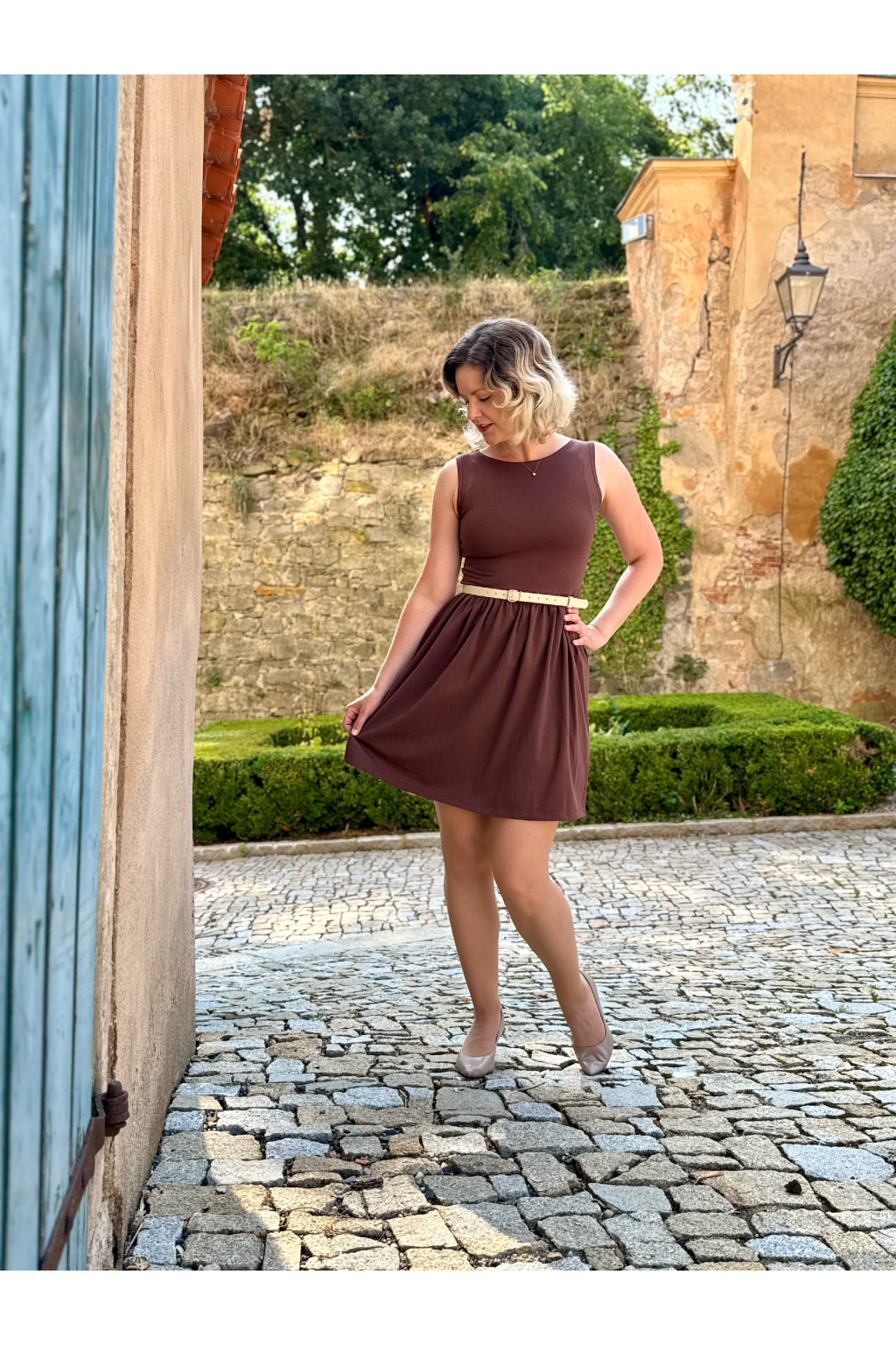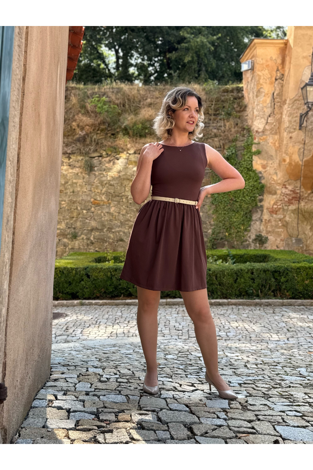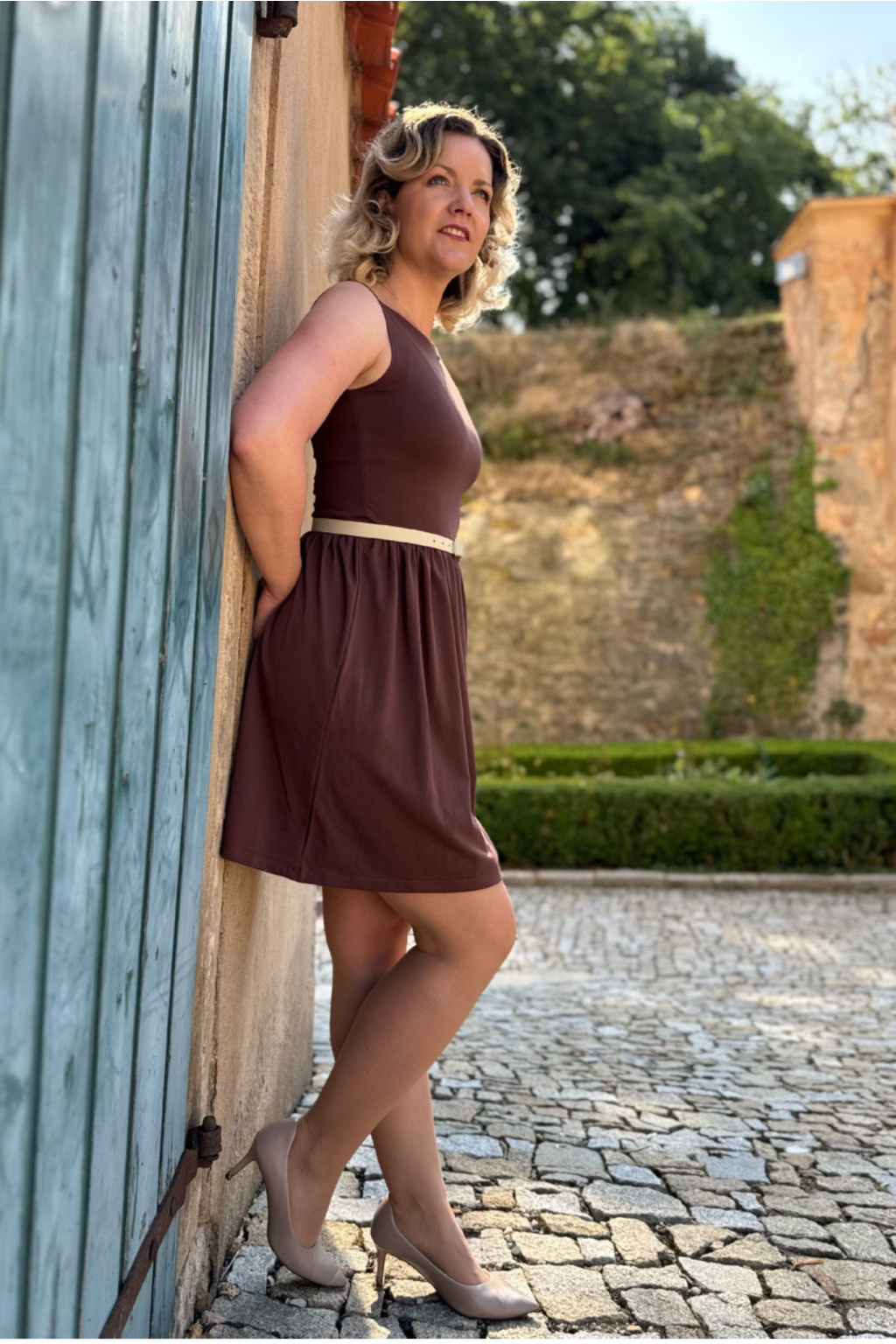 Bio bavlněné šaty Ava - hnědá - krátké / midi