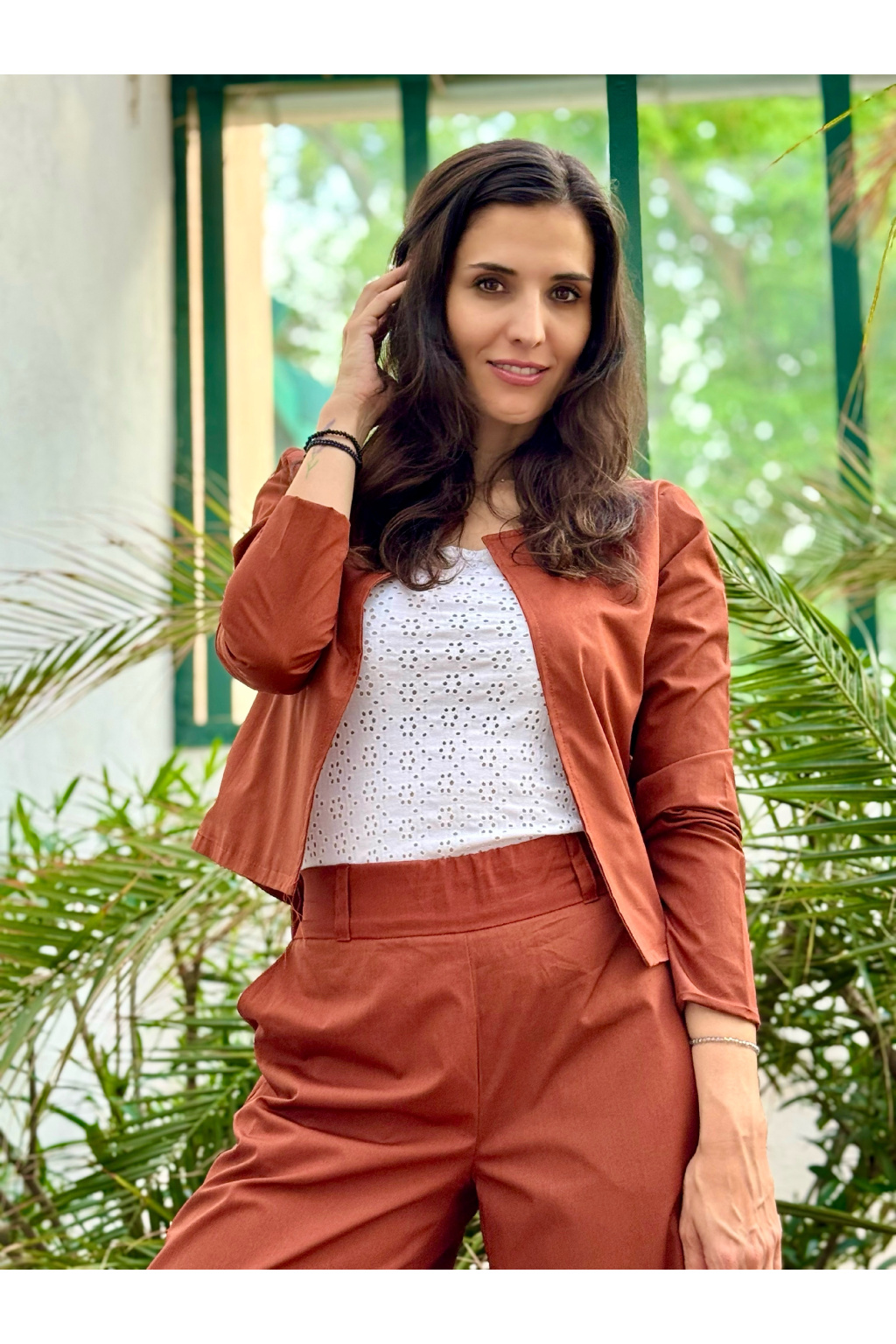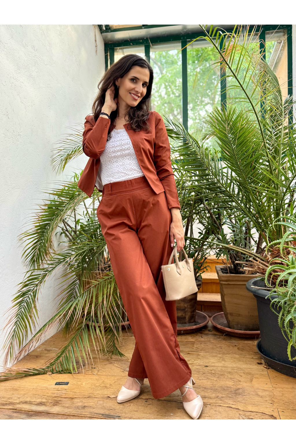 Bio bavlněné široké kalhoty - dlouhé - cihlová