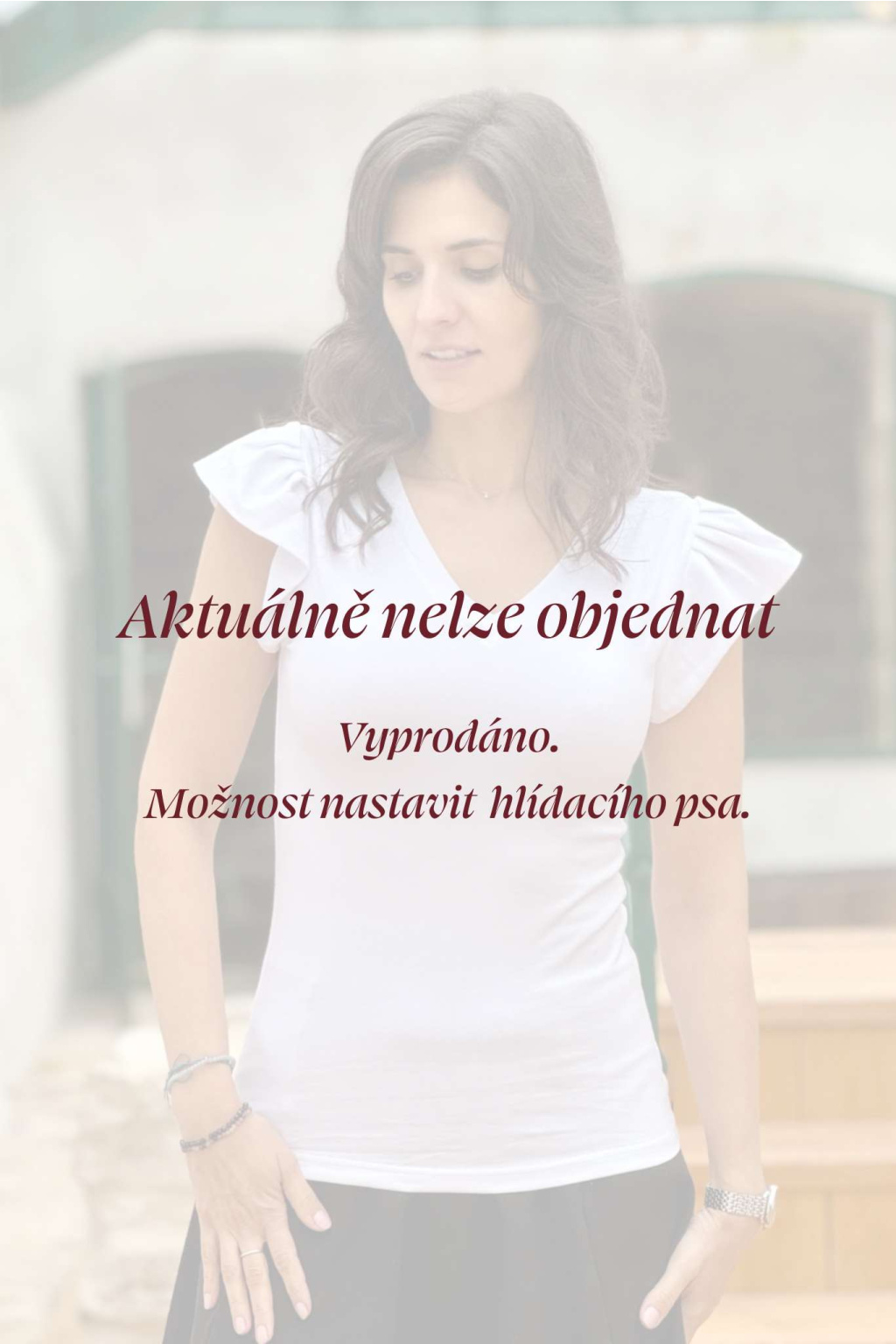Modelka na fotce má na sobě: tričko vel. XS, véčkový výstřih.