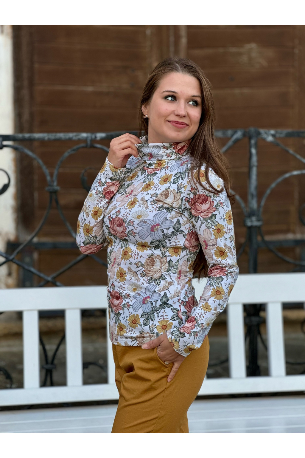 Modelka na fotce má na sobě: rolák vel. XS, dlouhý rukáv.