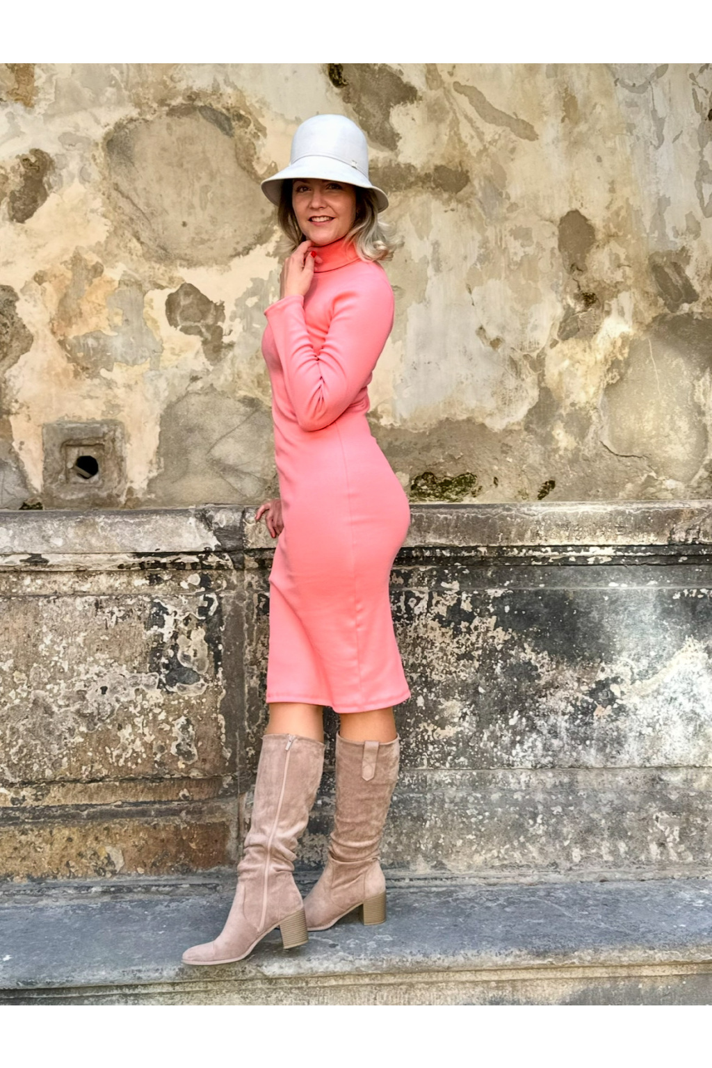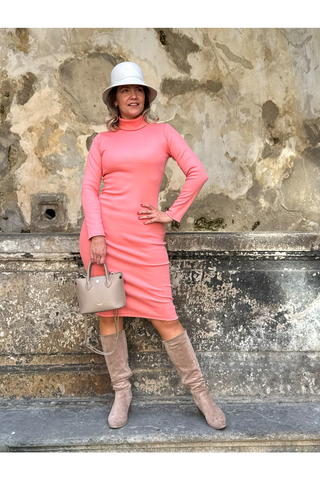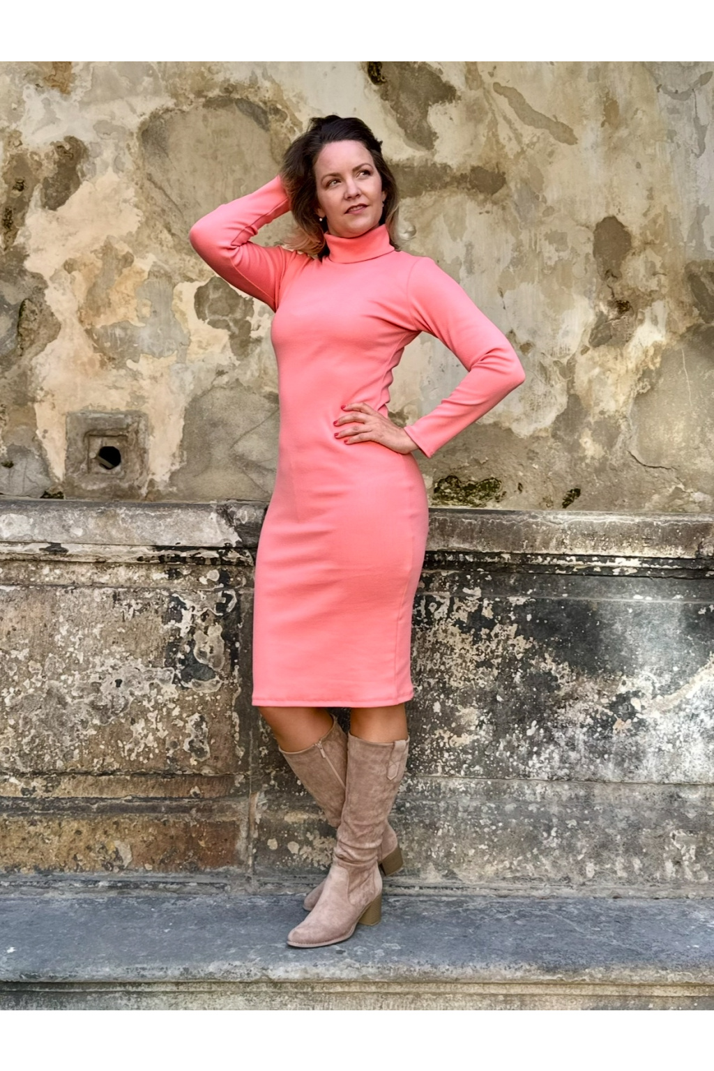 Hrubší úzké žebrované šaty Gill - korálová - krátké / midi