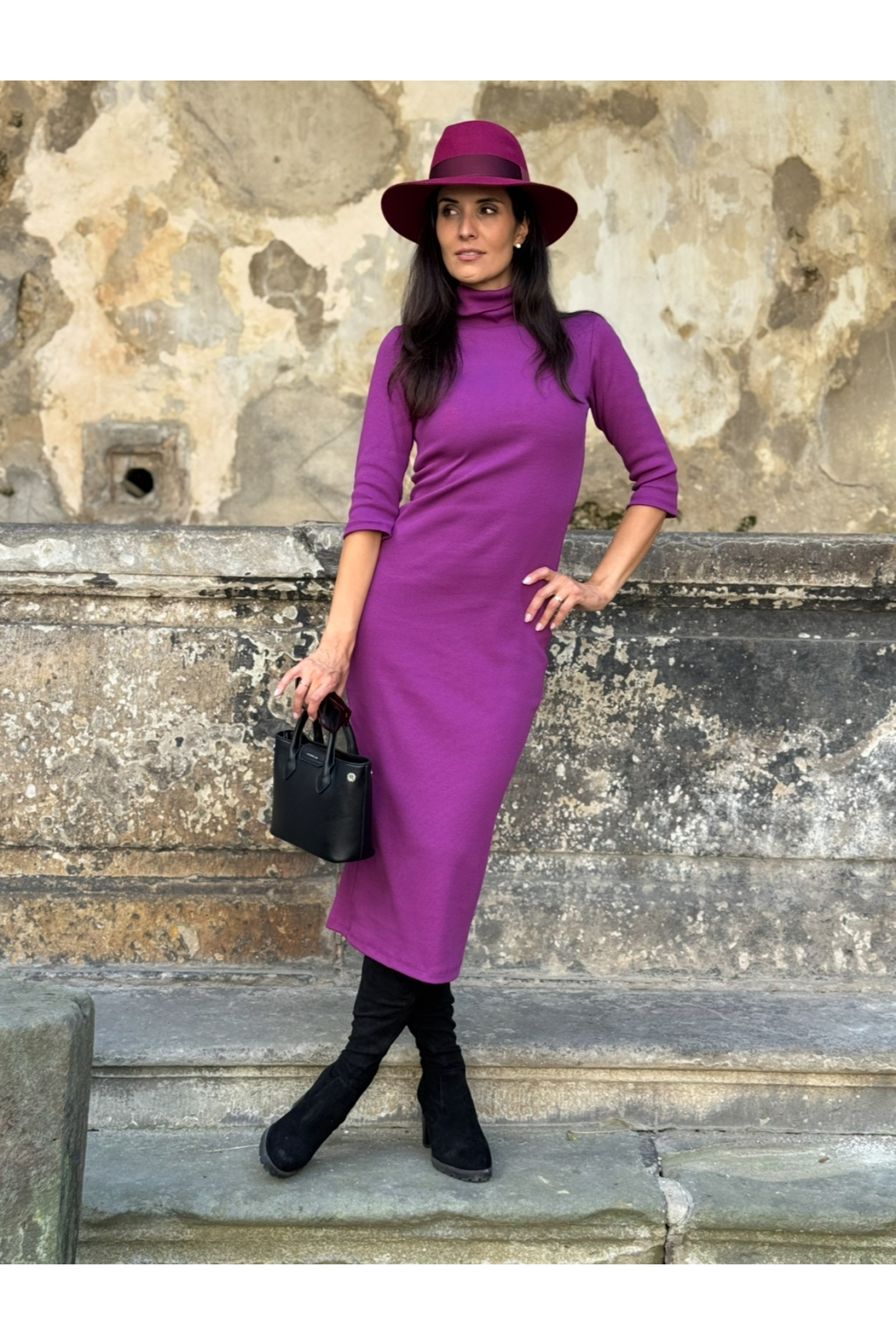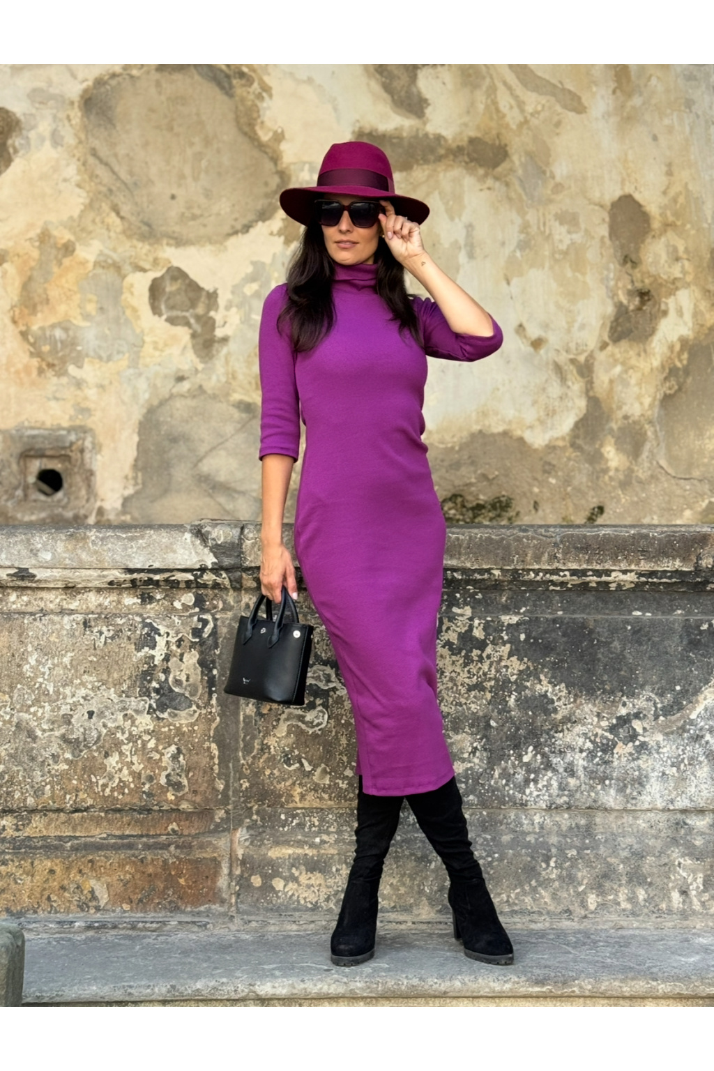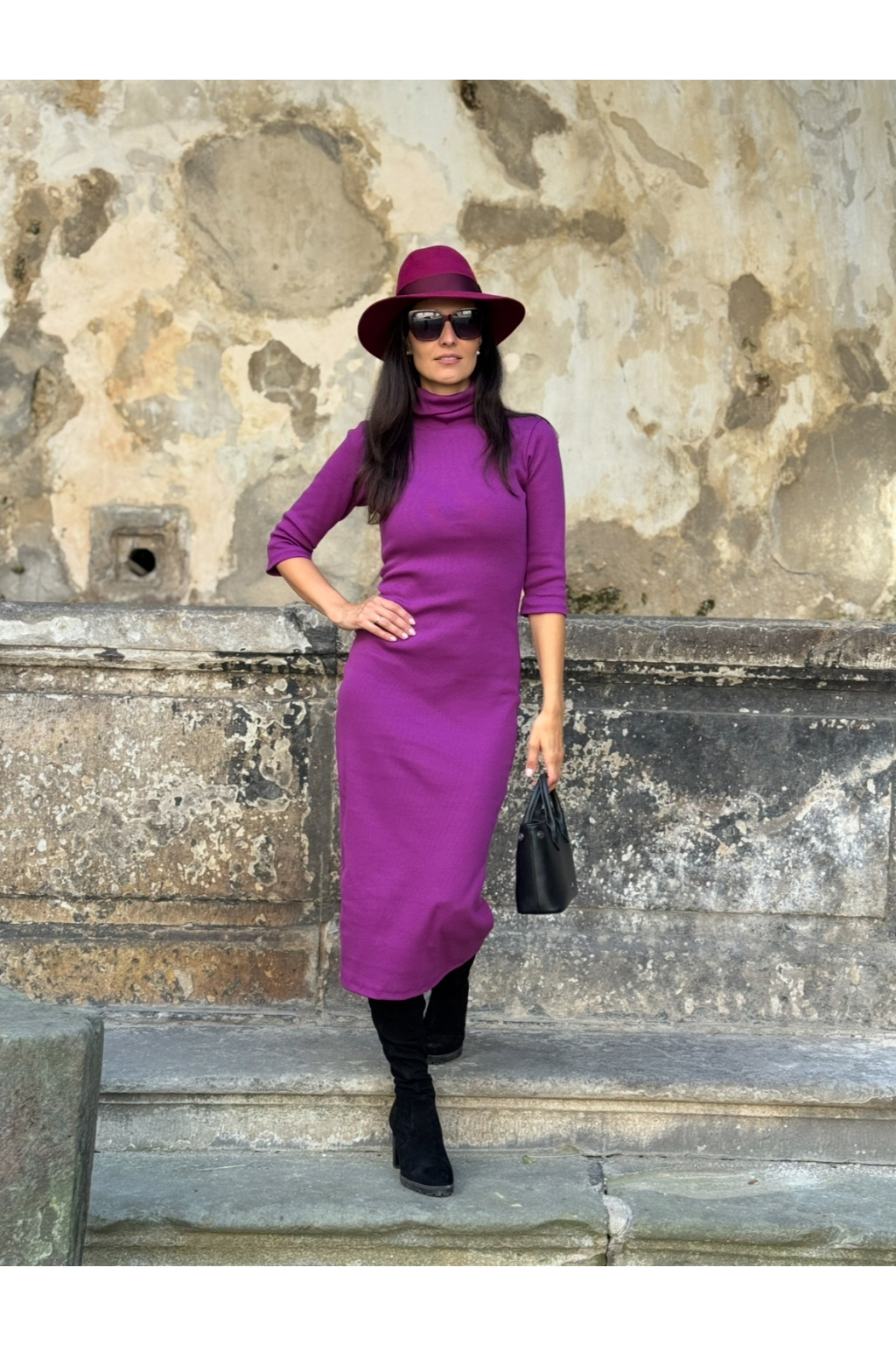 Hrubší úzké žebrované šaty Gill - orchidea - krátké / midi