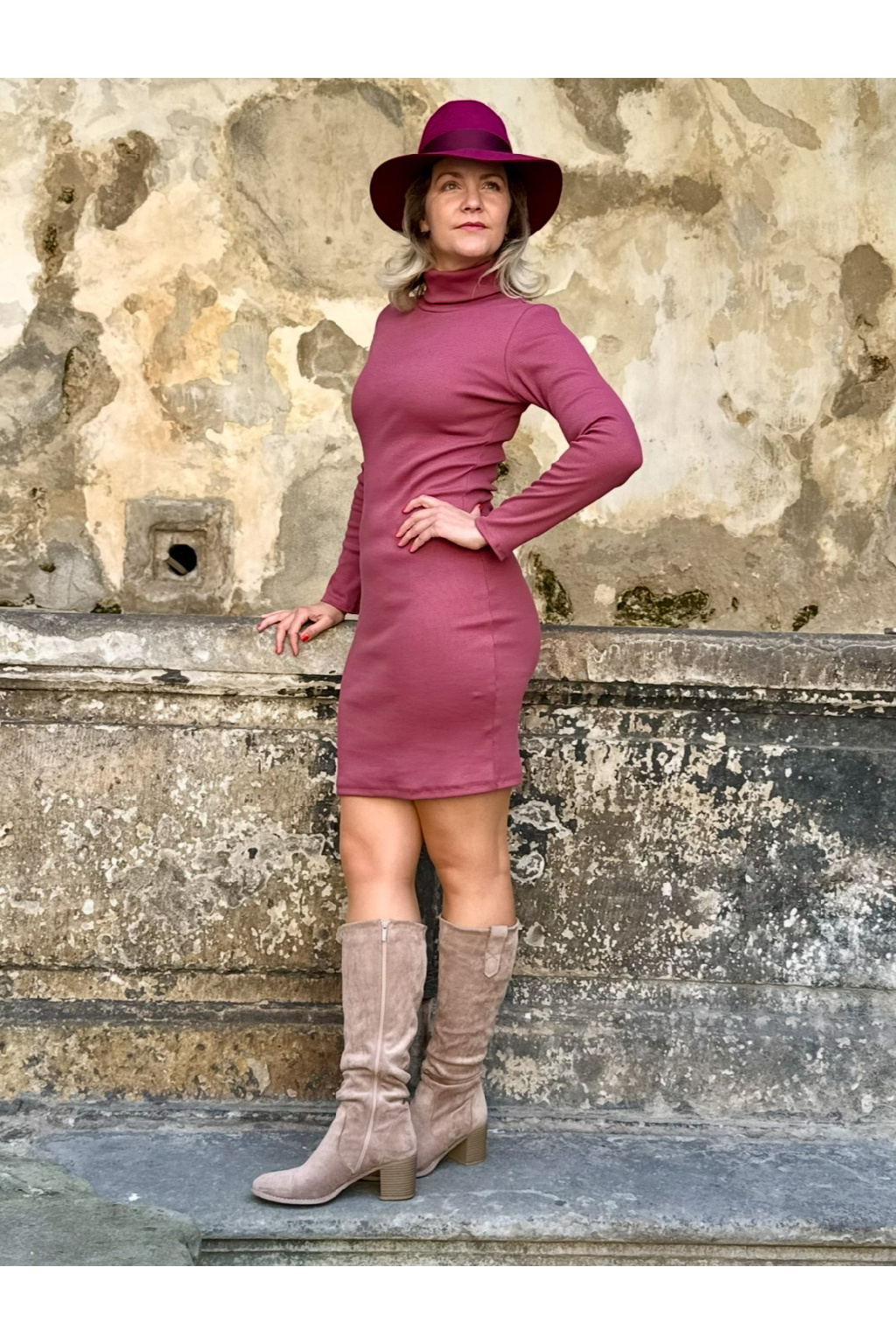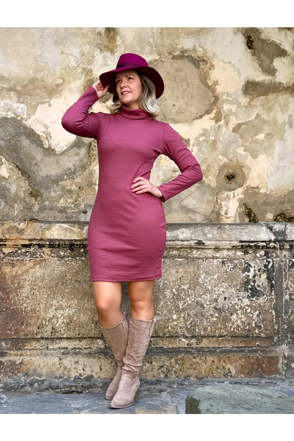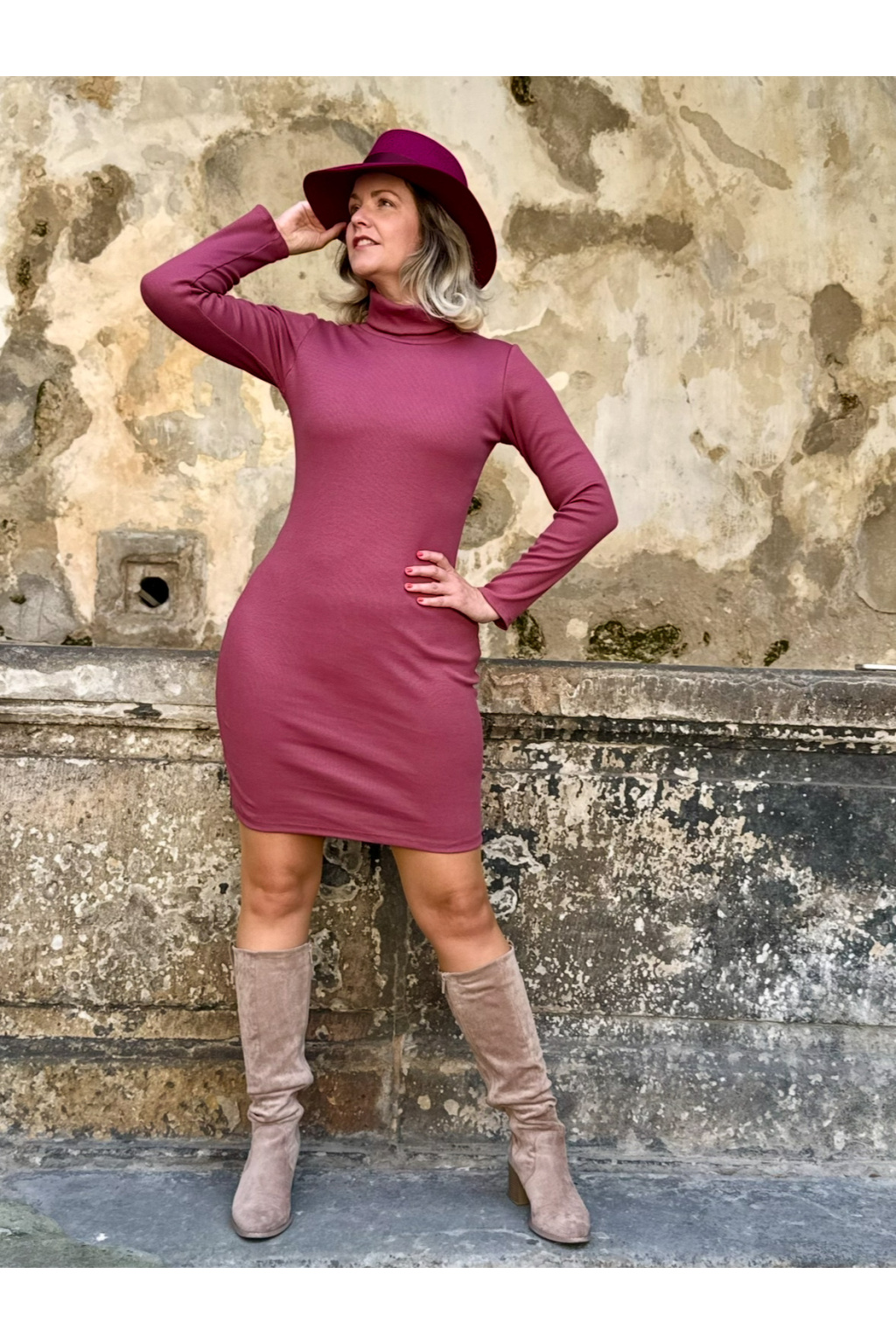 Hrubší úzké žebrované šaty Gill - rosewood - krátké / midi
