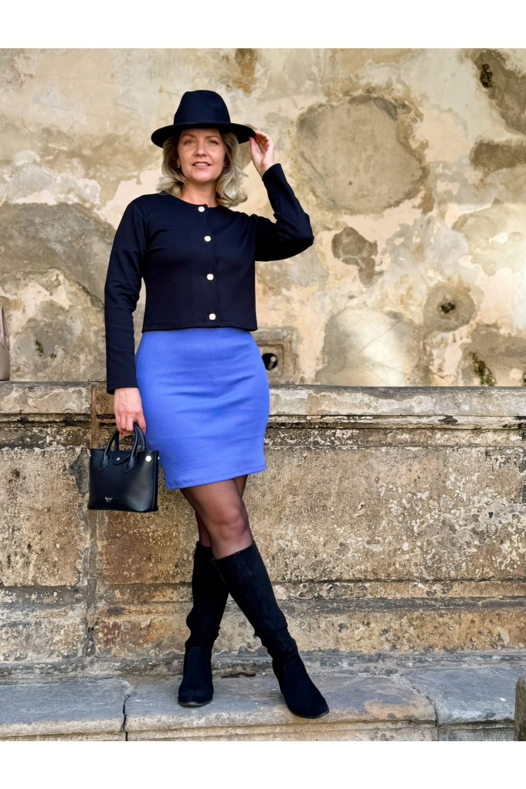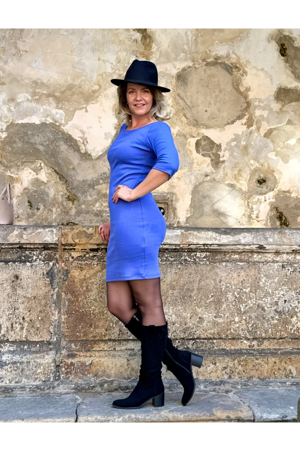 Hrubší úzké žebrované šaty Klasik - fialkově modrá - krátké / midi