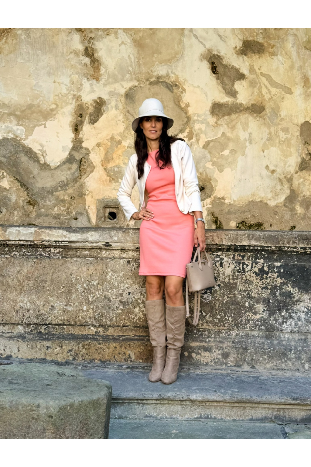 Hrubší úzké žebrované šaty Klasik - korálová - krátké / midi