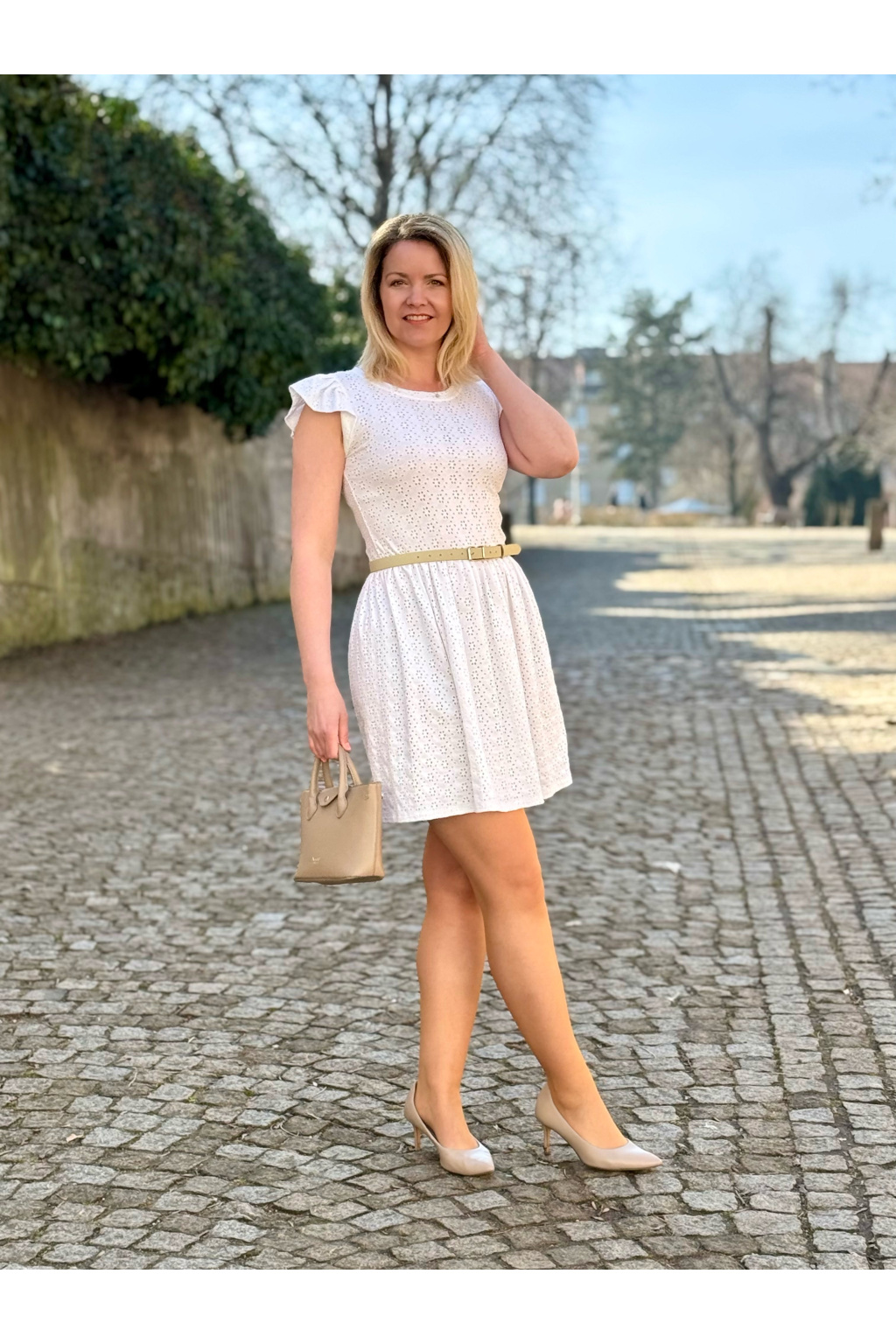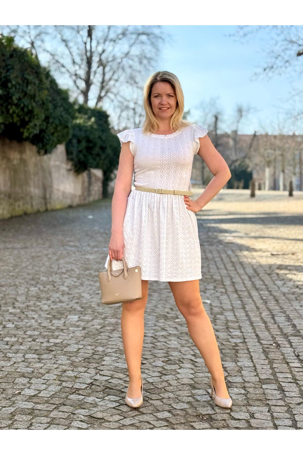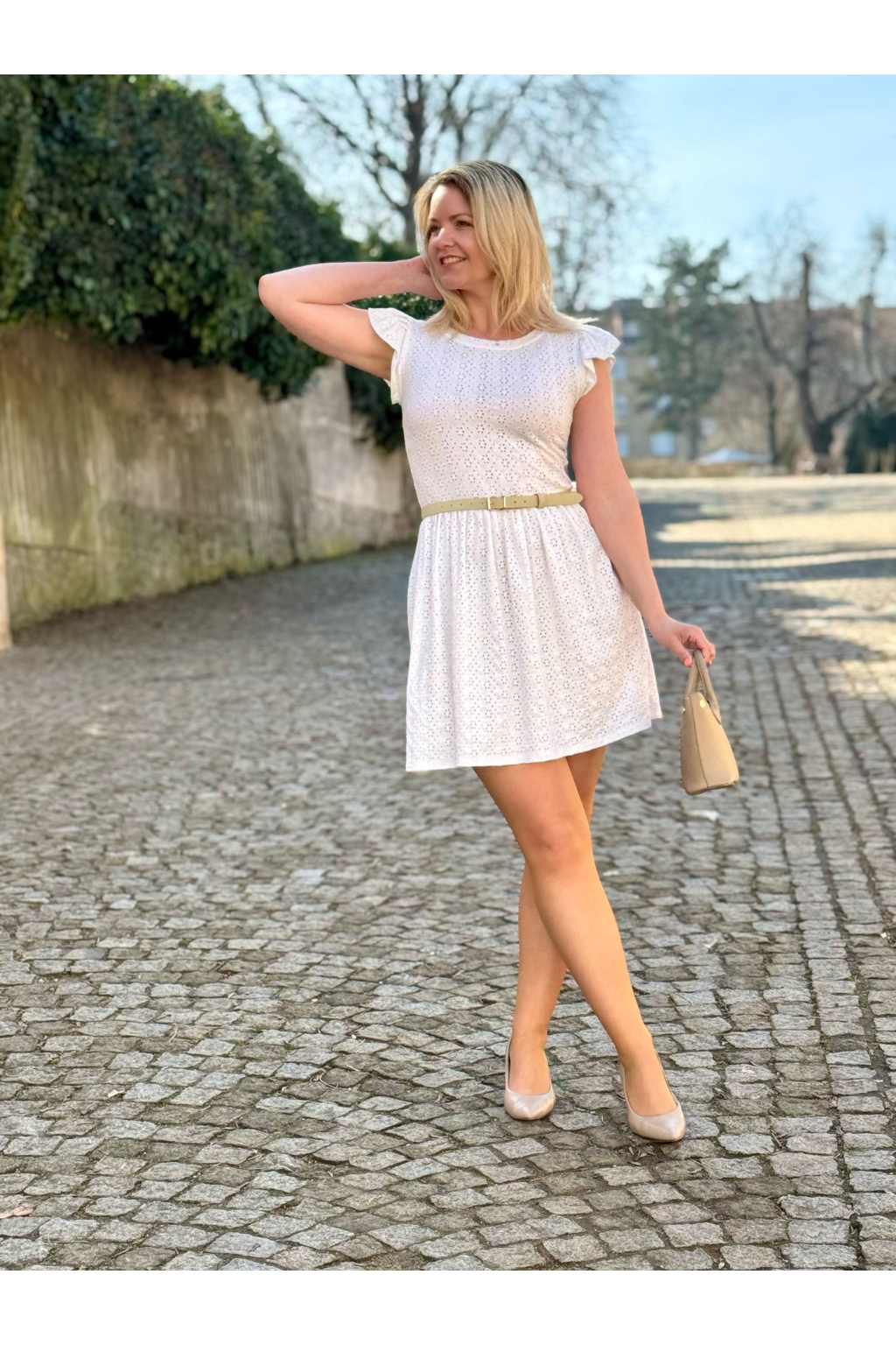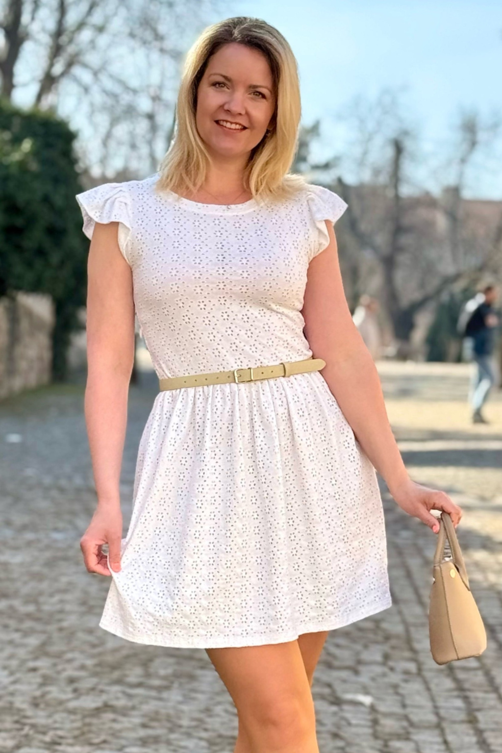 Madeirové šaty Aria - bílá - krátké / midi - 2 týdny