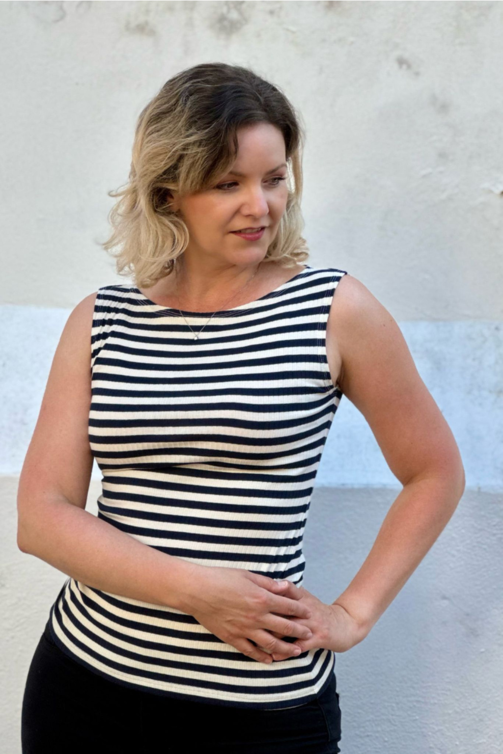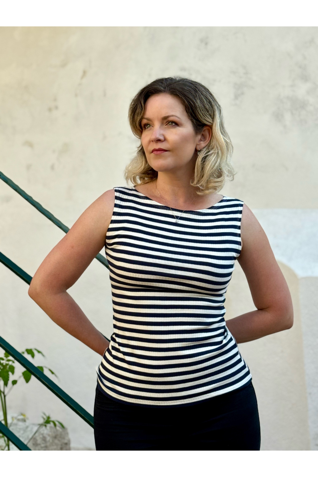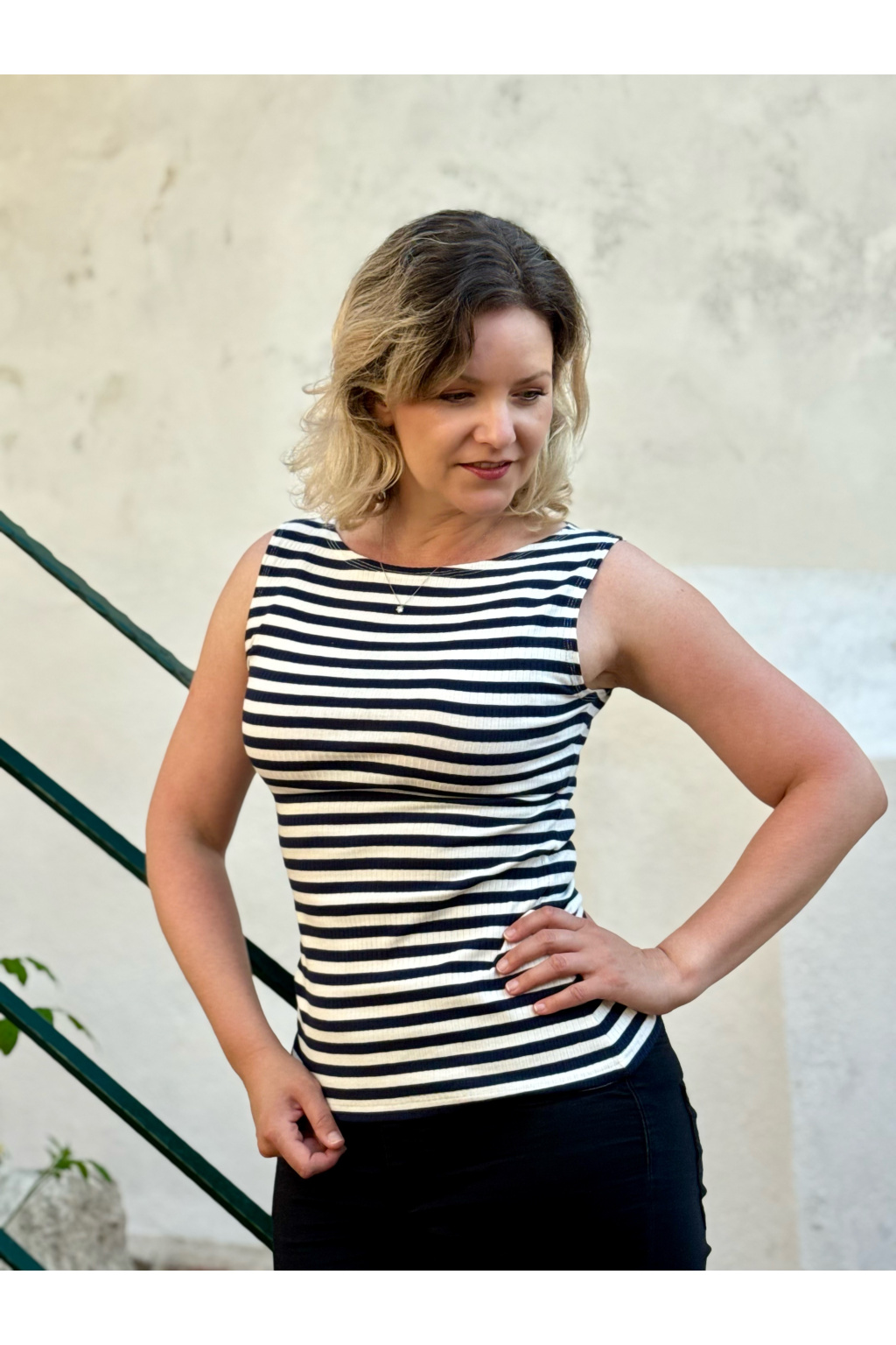 Proužkované tričko bez rukávů s lodičkovým výstřihem s možností výběru velikosti.