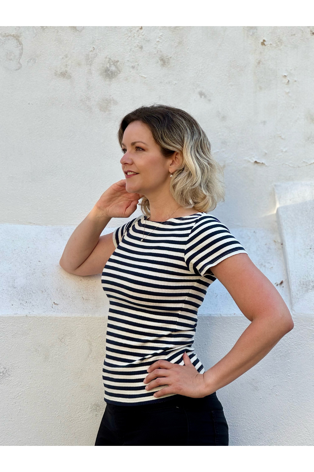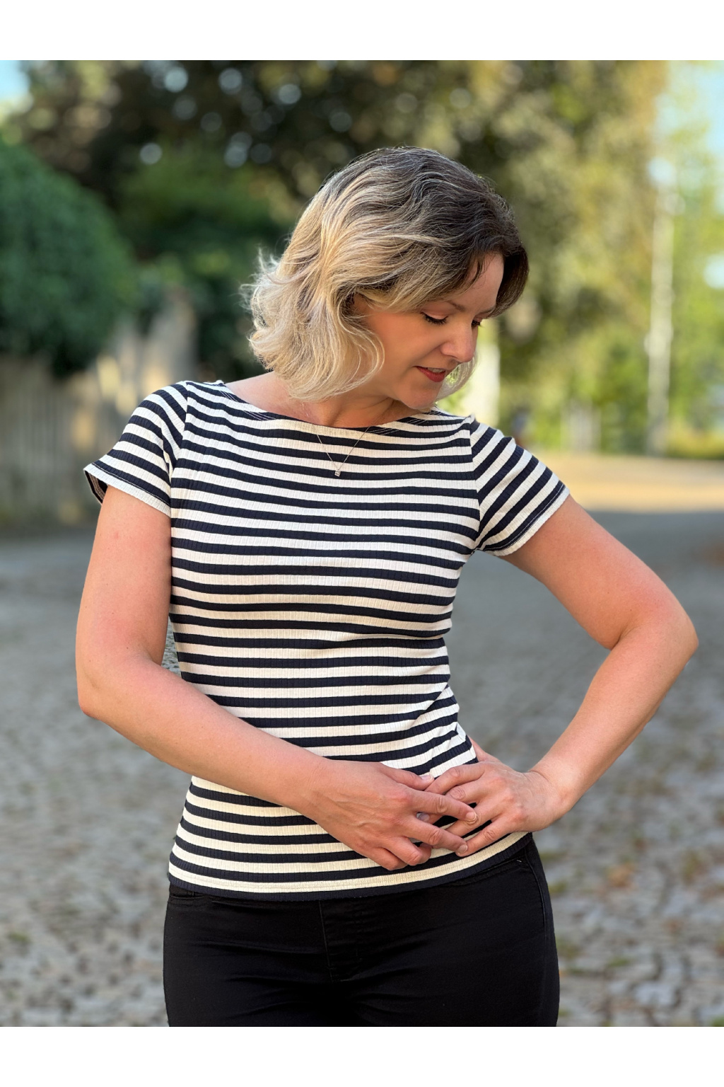Proužkované tričko s lodičkovým výstřihem s možností typu rukávů a velikosti.