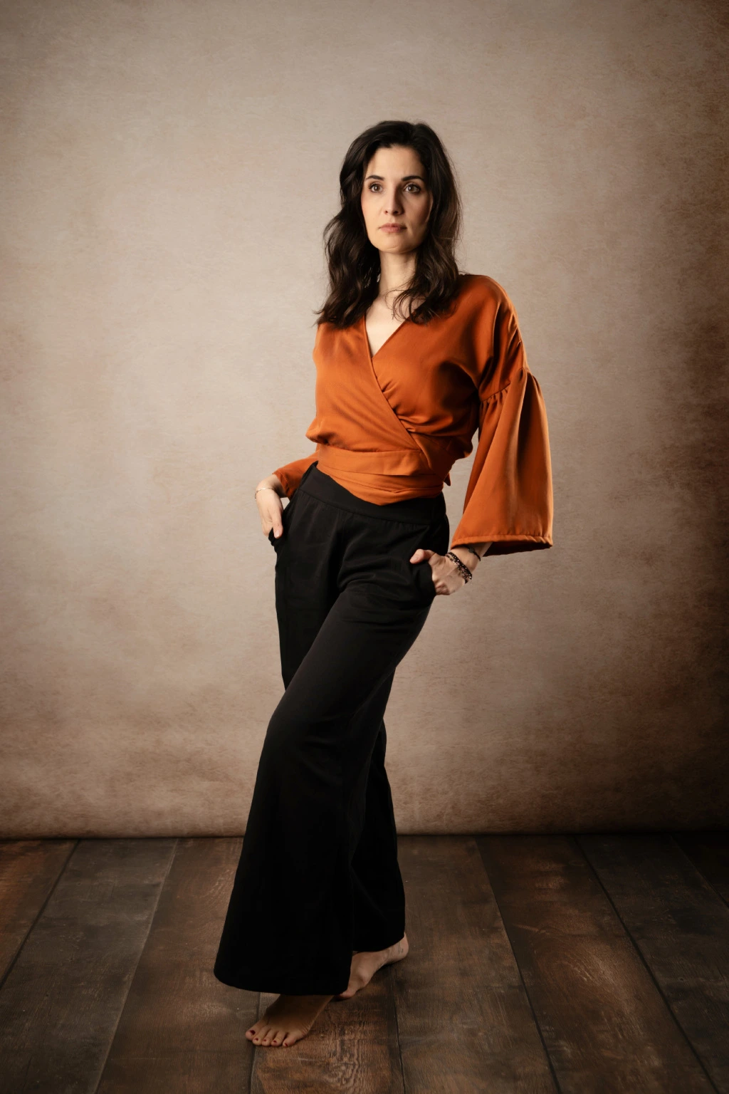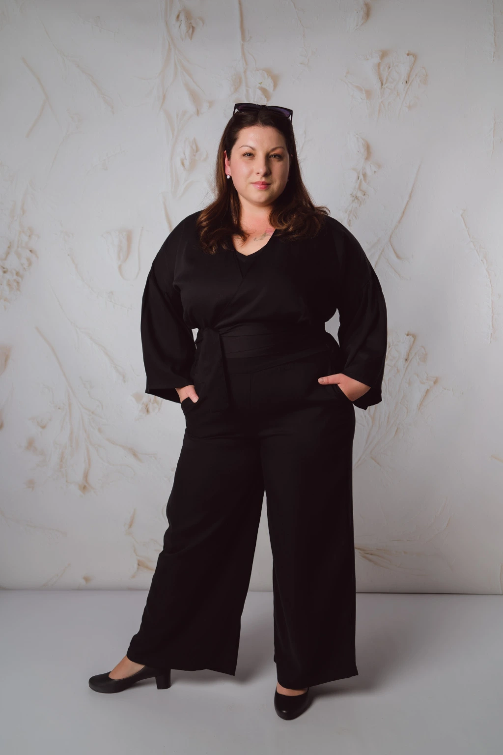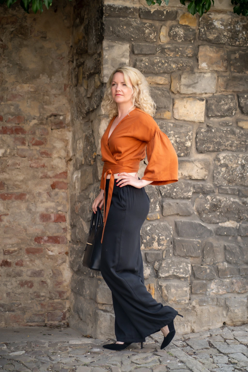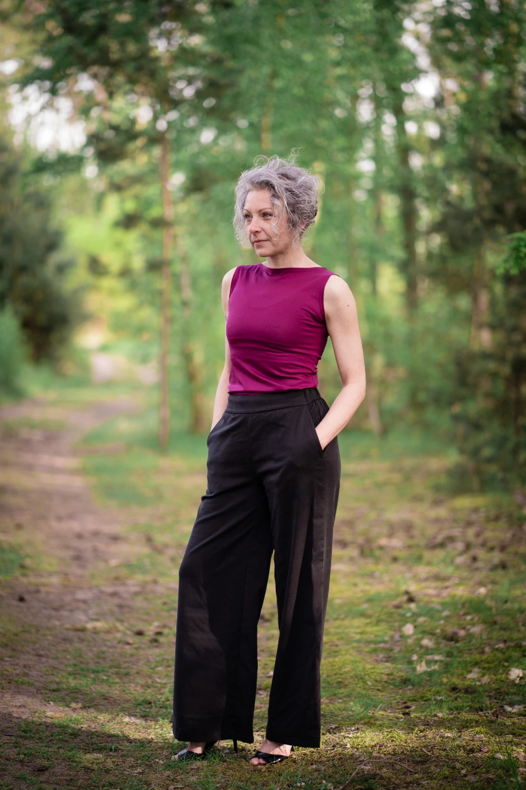 Tencelové široké kalhoty - černá