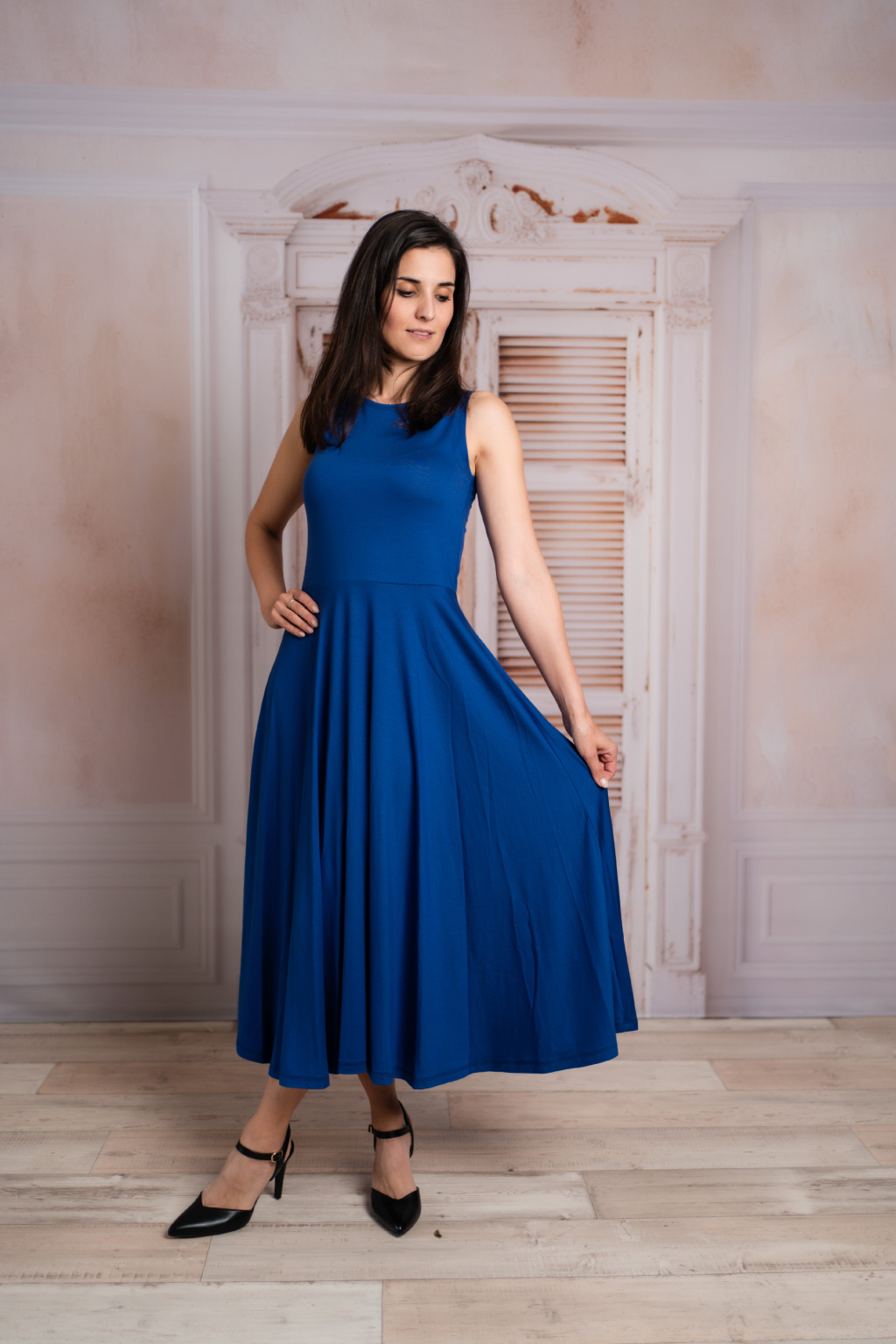 Tencelové šaty Ava - královská modrá - krátké / midi
