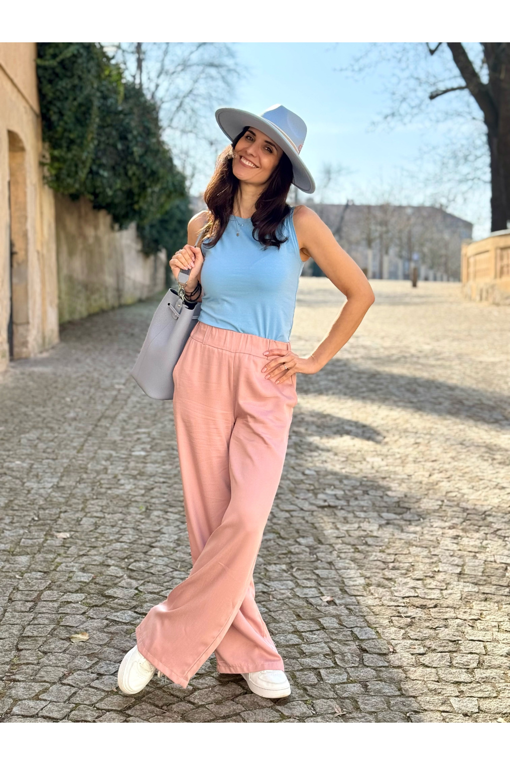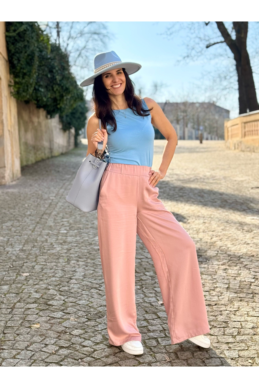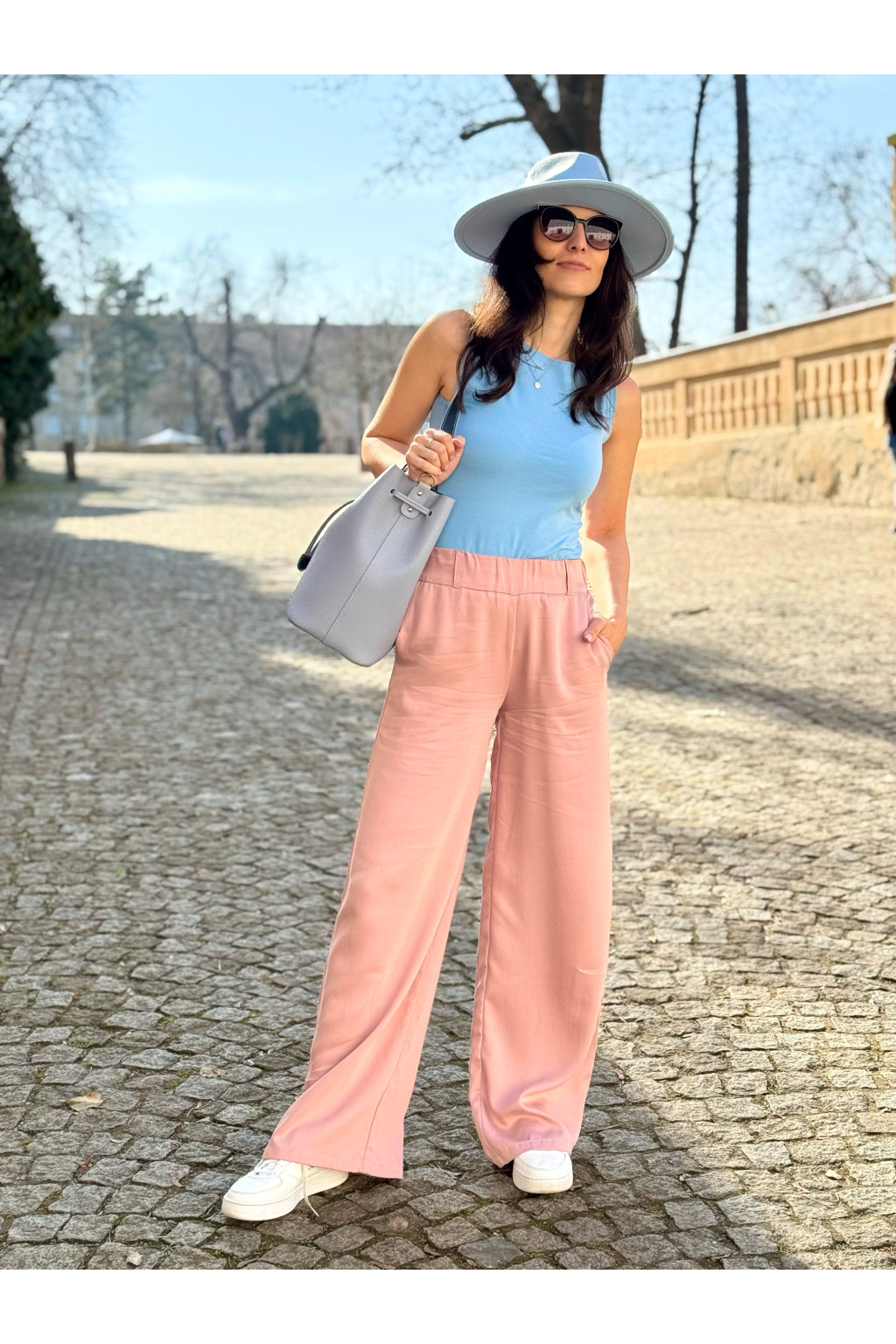 Tencelové široké kalhoty - dlouhé - růžová - 2 týdny
