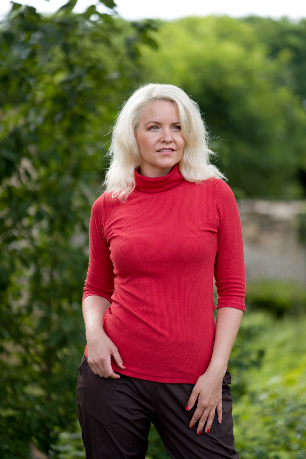 Modelka na fotce má na sobě: rolák vel. S, 3/4 rukáv.