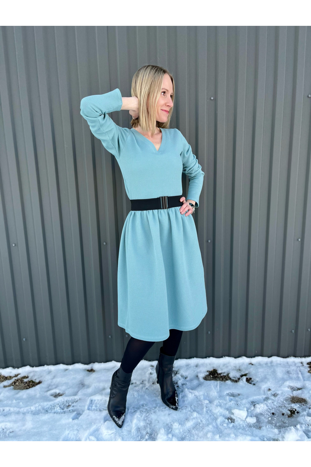 Vaflové bio bavlněné šaty Klasik - Zarina - mentolová - krátké / midi