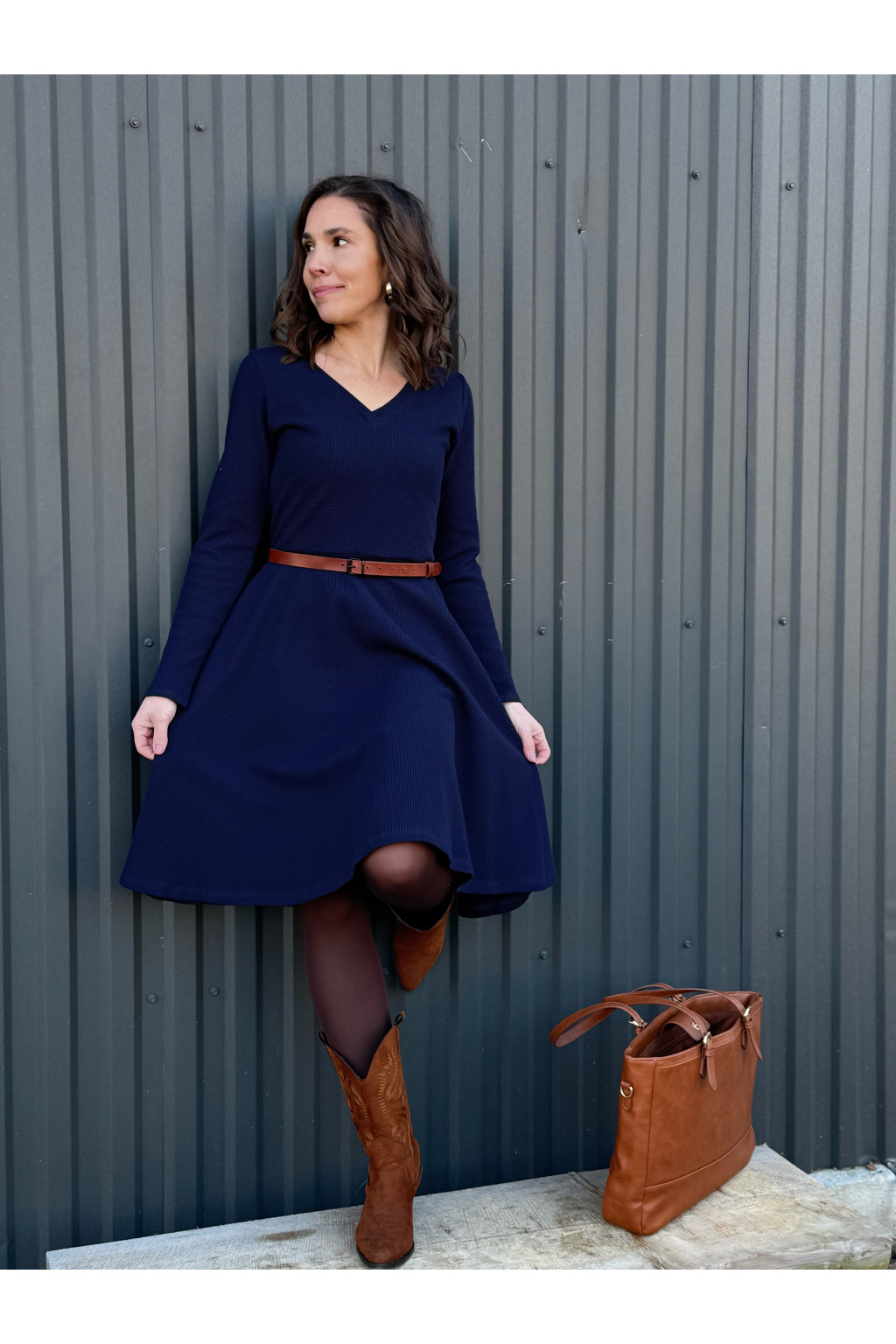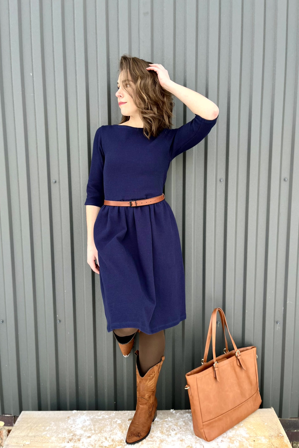 Vaflové bio bavlněné šaty Klasik - Zarina - námořnická modrá - krátké / midi