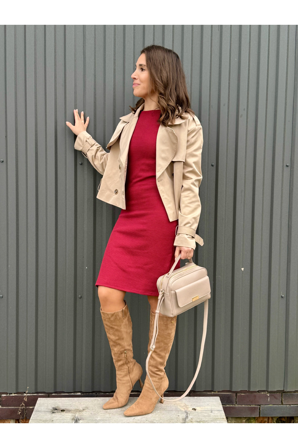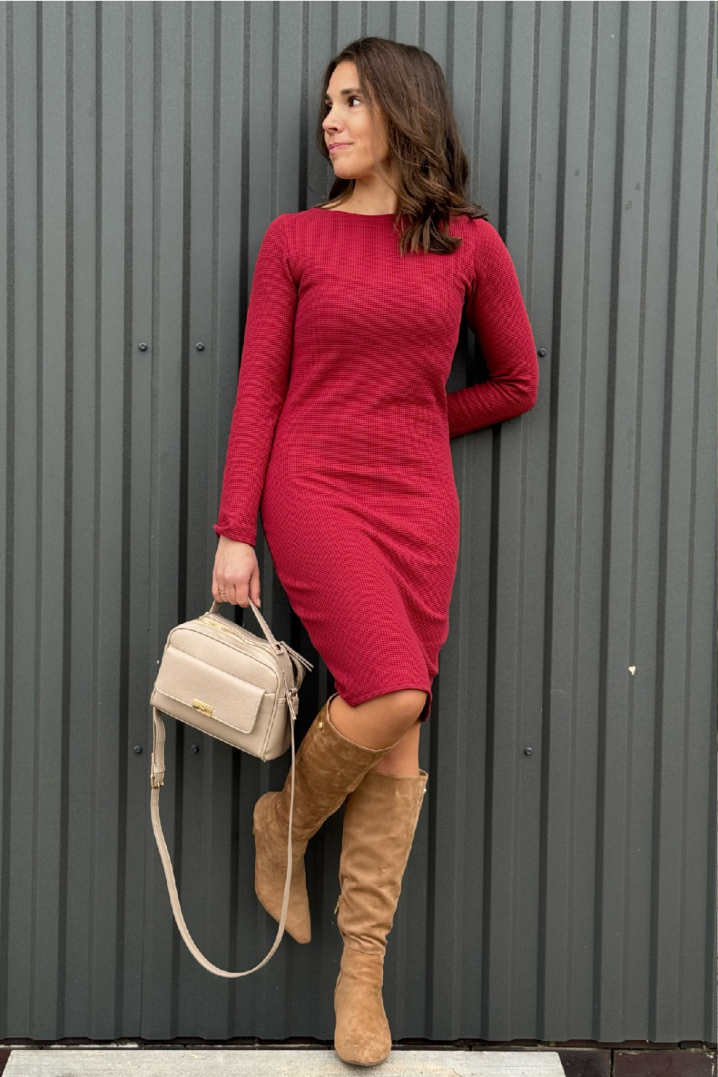 Vaflové bio bavlněné úzké šaty - Zarina - červená - krátké / midi