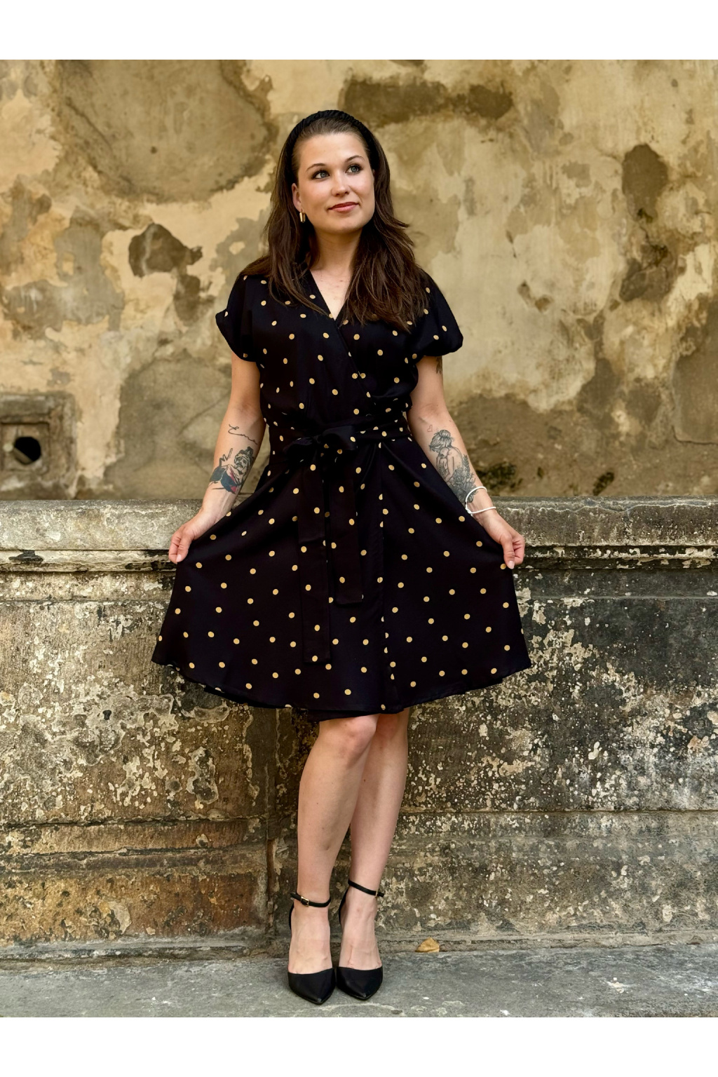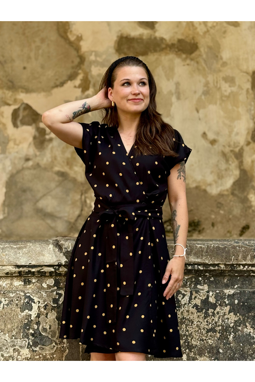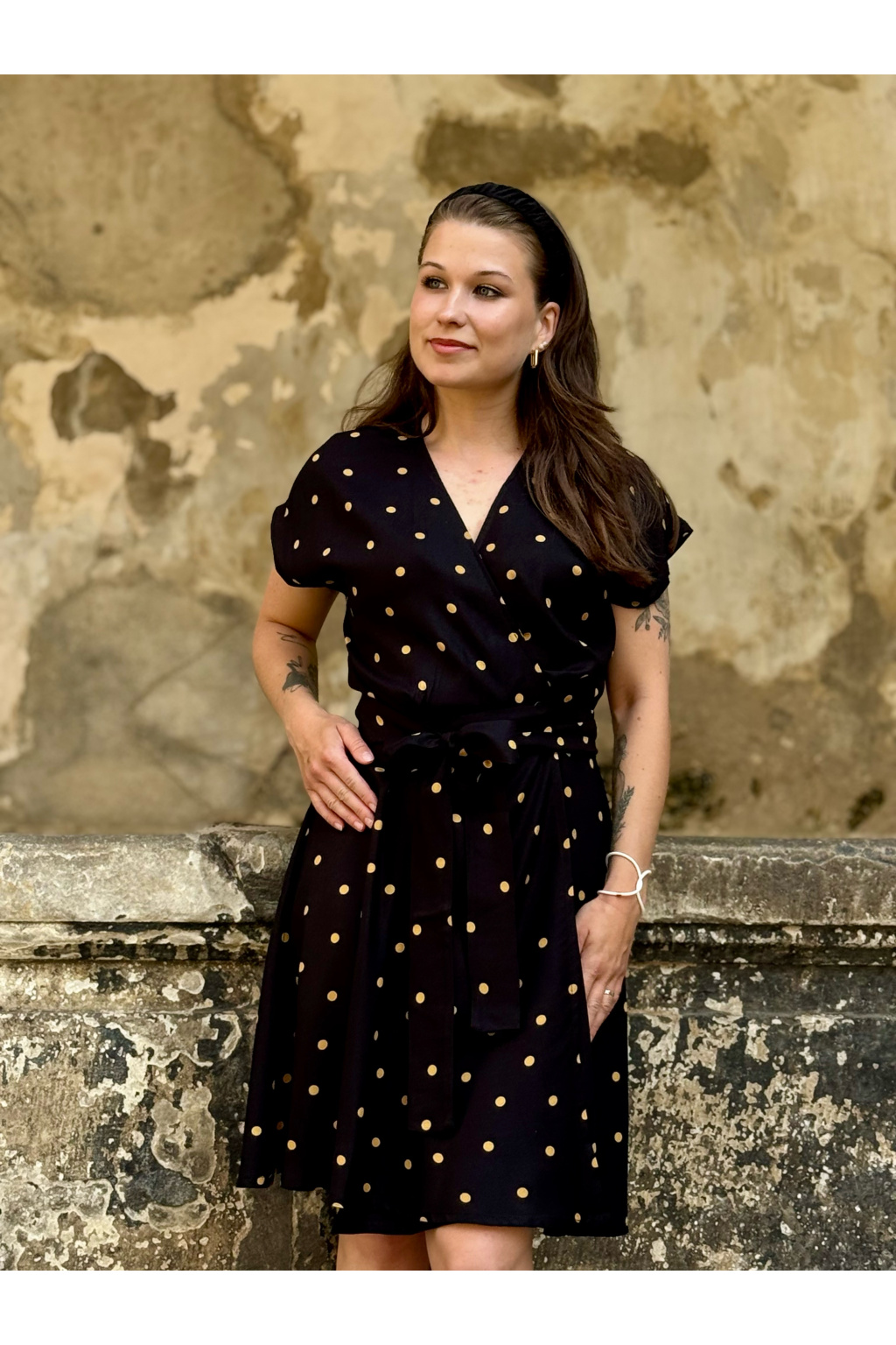 Zavinovací šaty - puntíkaté - černá - EcoVero viskóza - 2 týdny
