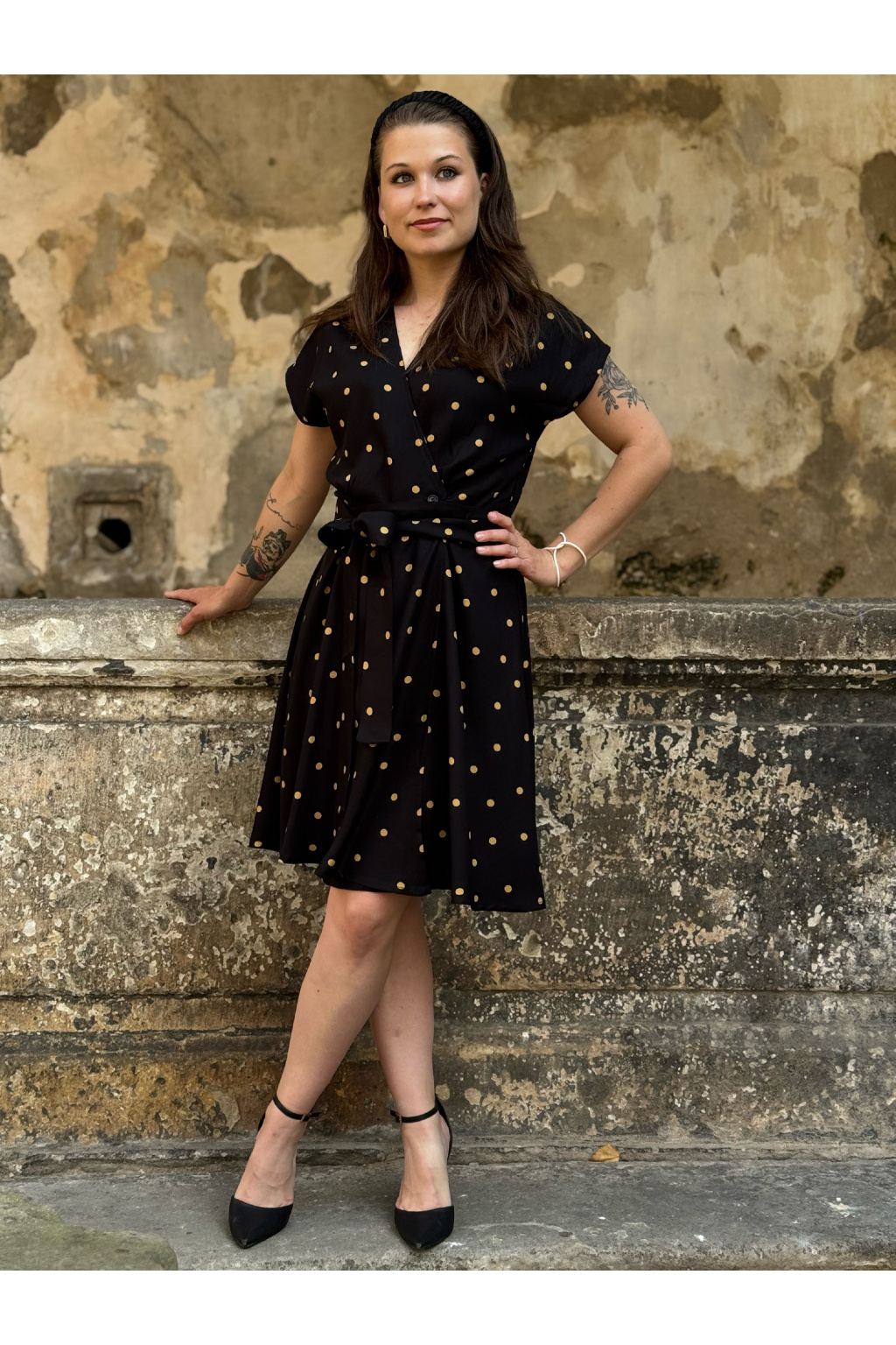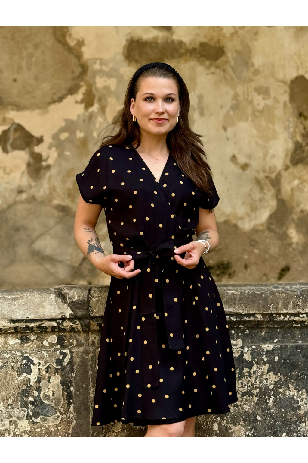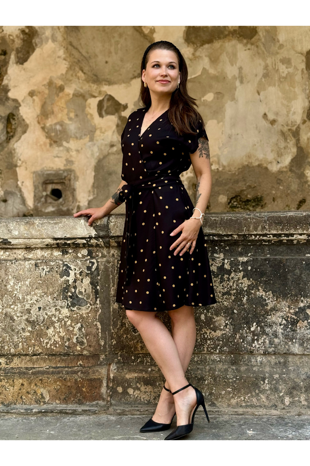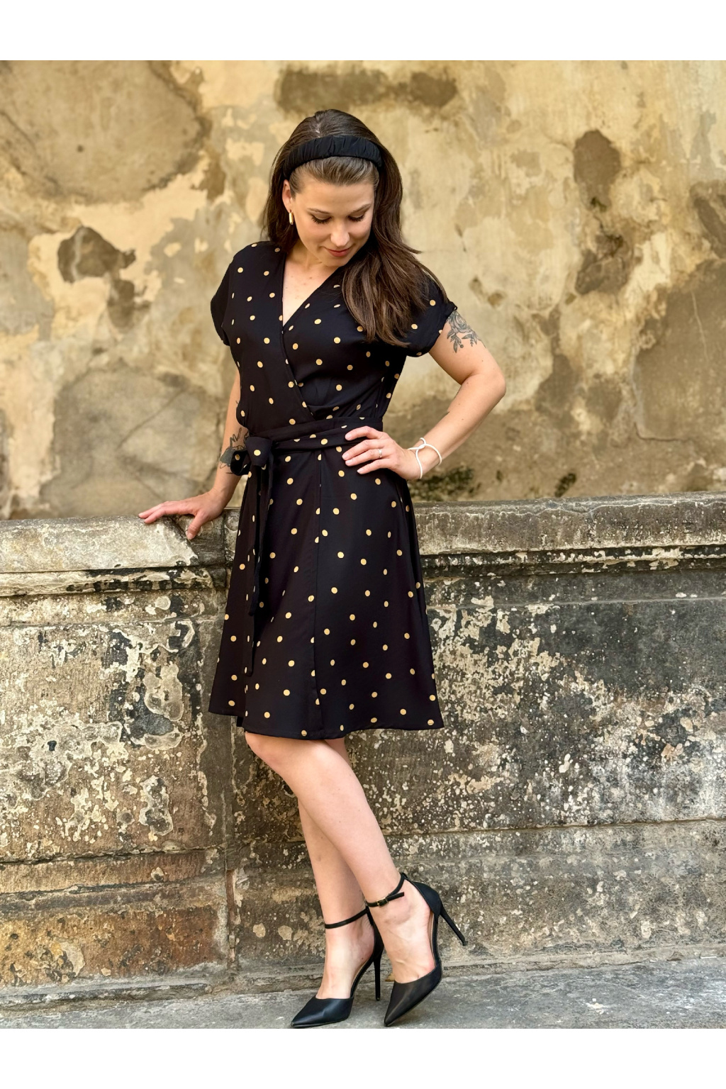 Zavinovací šaty - puntíkaté - černá - EcoVero viskóza - 2 týdny