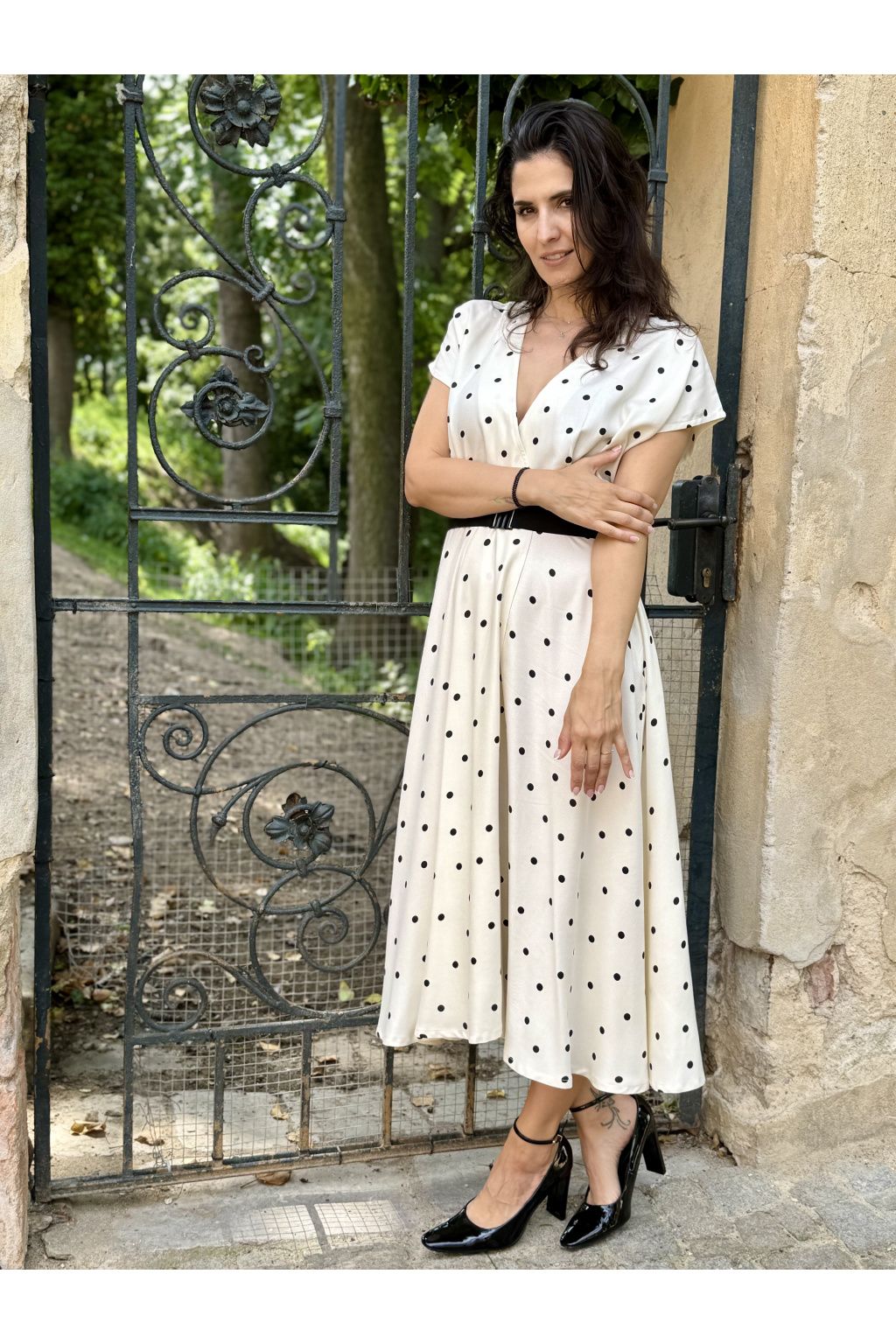 Zavinovací šaty - puntíkaté - smetanová - EcoVero viskóza