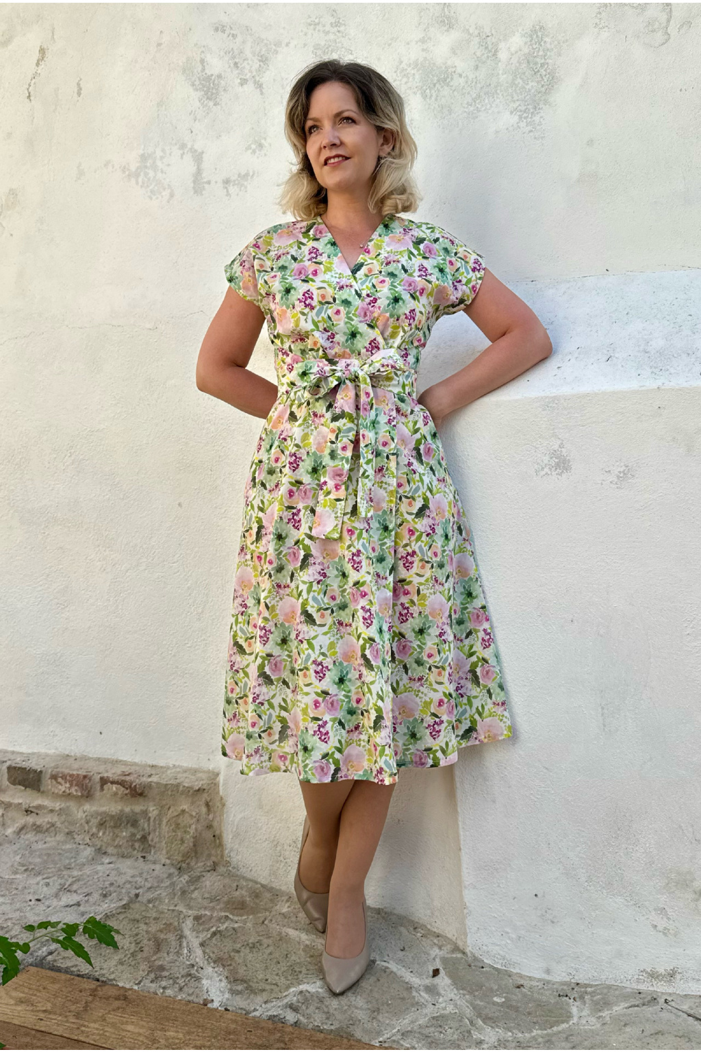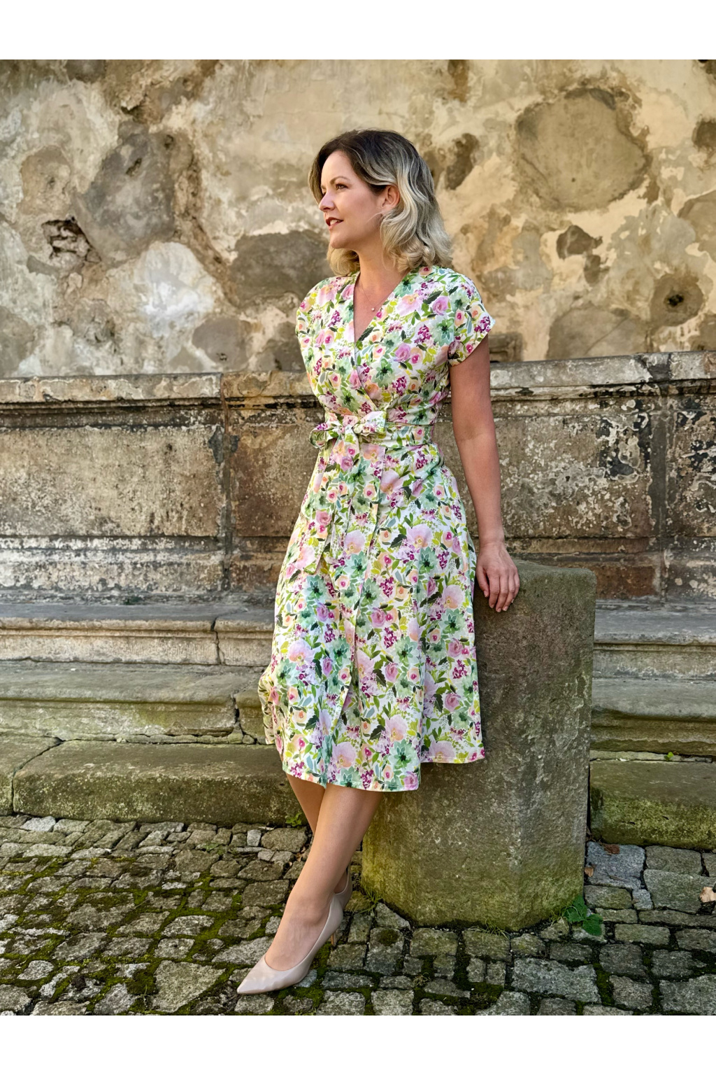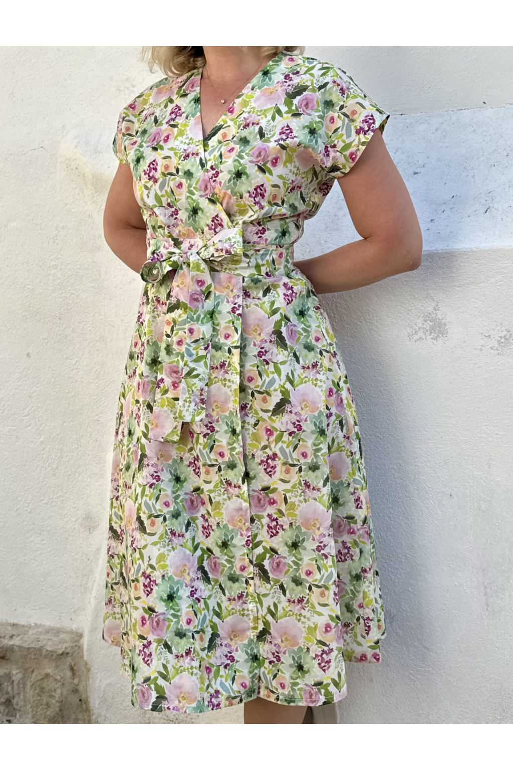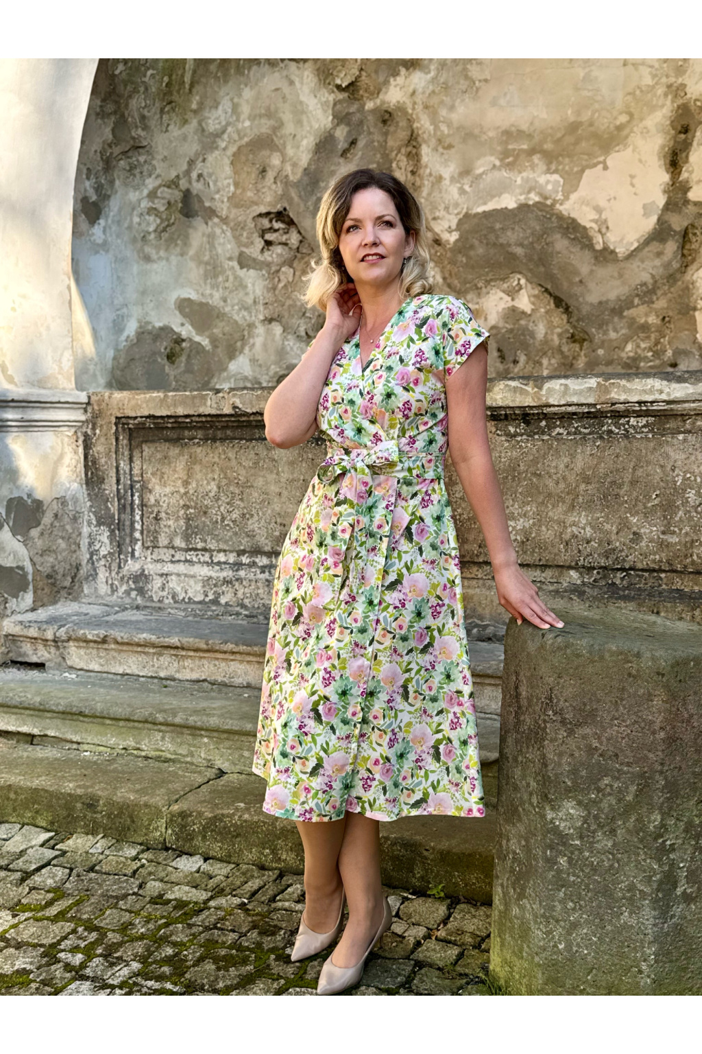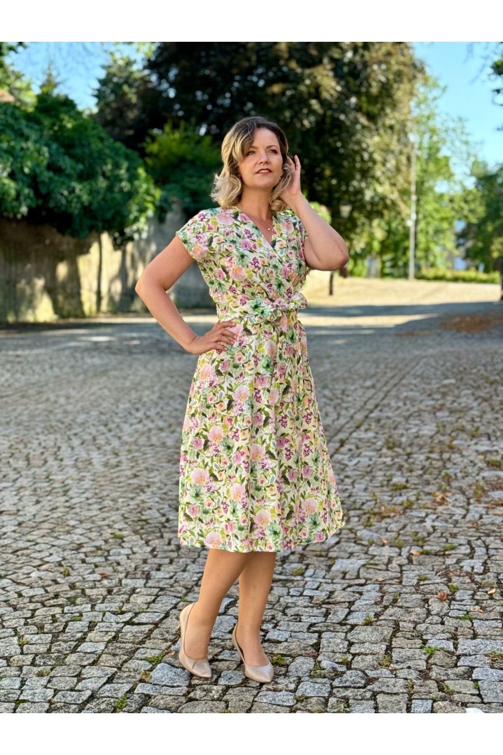 Modelka na fotce má na sobě: vel. XS, midi s délkou cm, krátký rukáv.