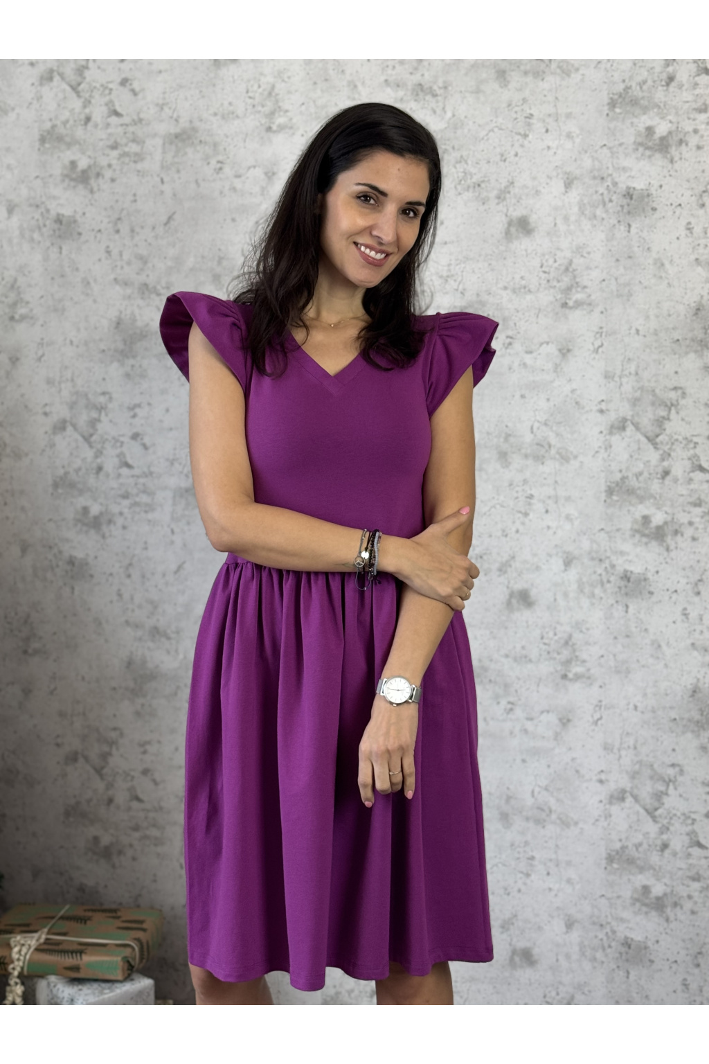 Bavlněné šaty Aria - ostružinová - midi 120 - vel. M - skladem