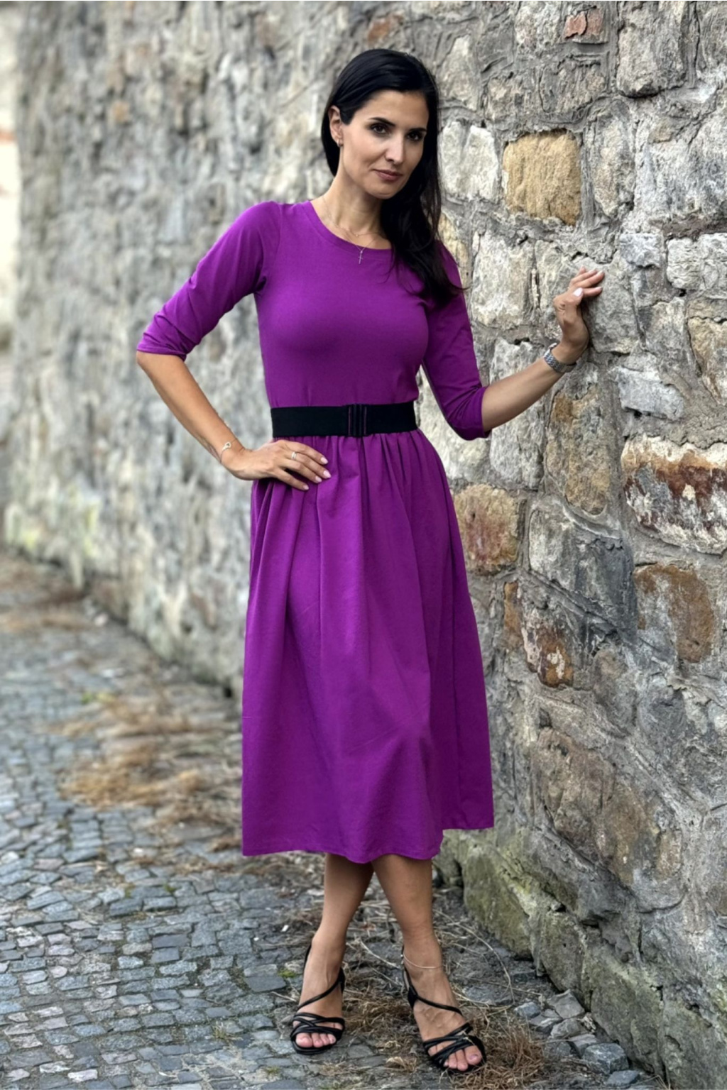 Bavlněné šaty Klasik - ostružinová - midi 120 cm - vel. S - skladem