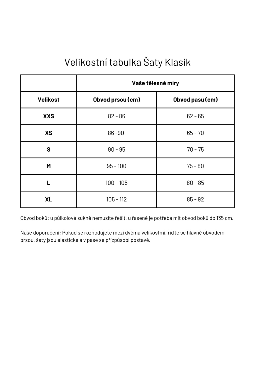 Jak vybrat správnou velikost: Velikostní tabulka