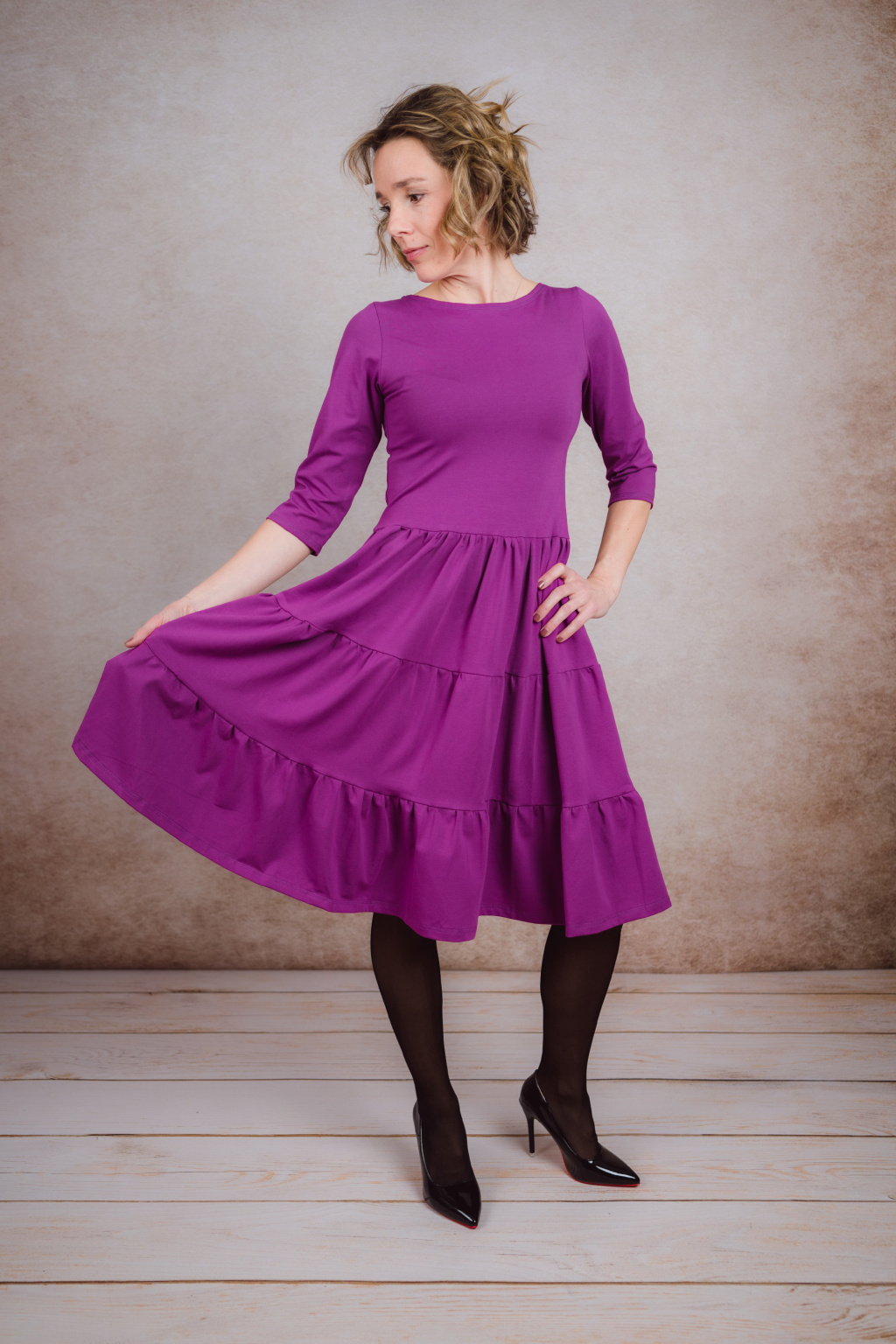 Bavlněné šaty řasené - ostružinová - krátké 100 cm - vel. S - skladem