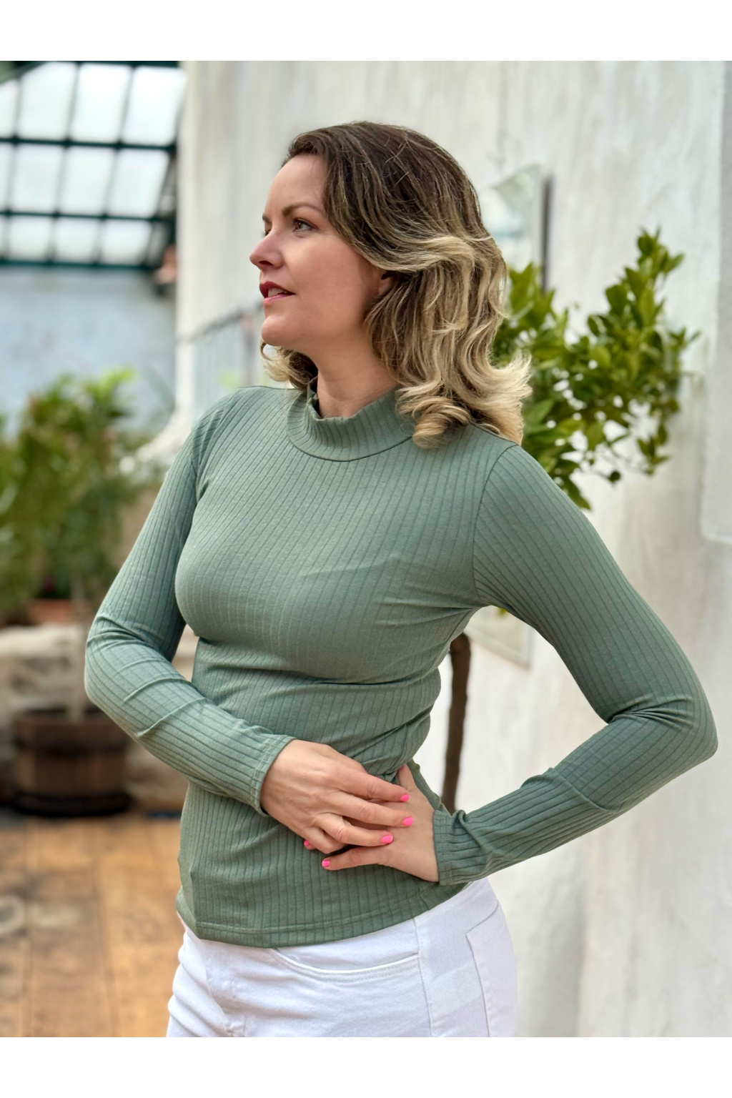Modelka na fotce má na sobě: tričko vel. XS, stojáček, dlouhý rukáv.