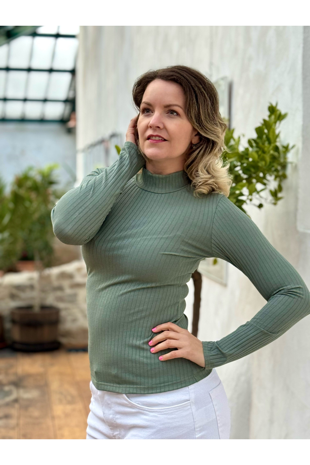 Bavlněné tričko Klasik - širší žebro - šedozelená - vel. XS - skladem