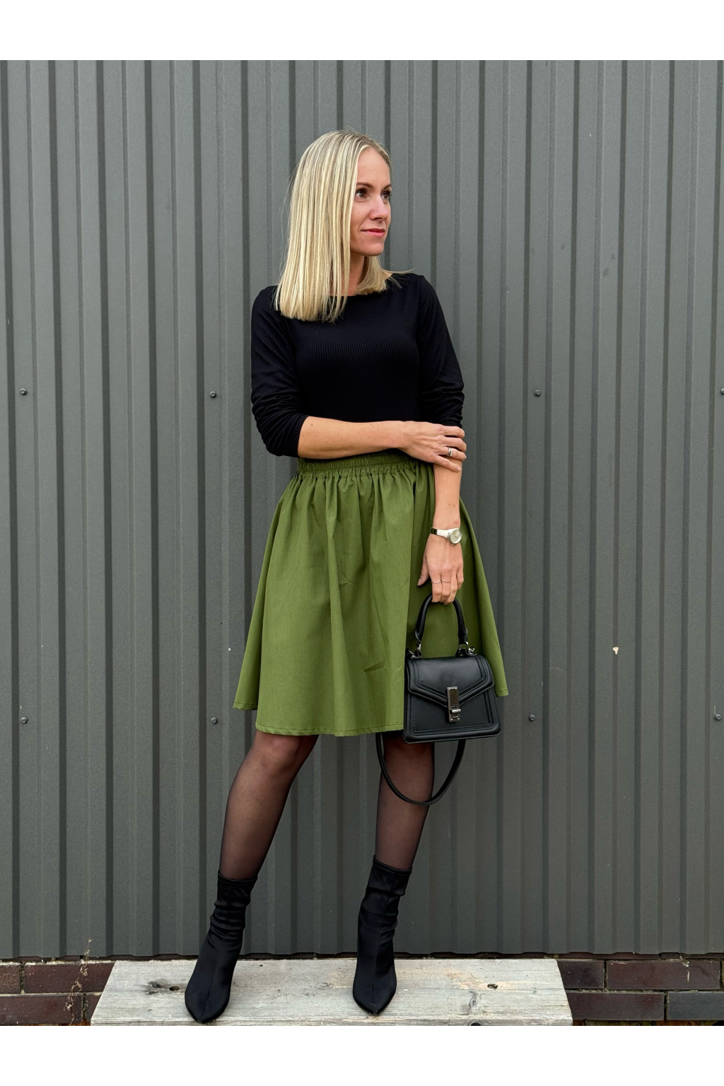 Bio bavlněná sukně - Tamaria - khaki - vel. XXS-S - 50 cm - skladem