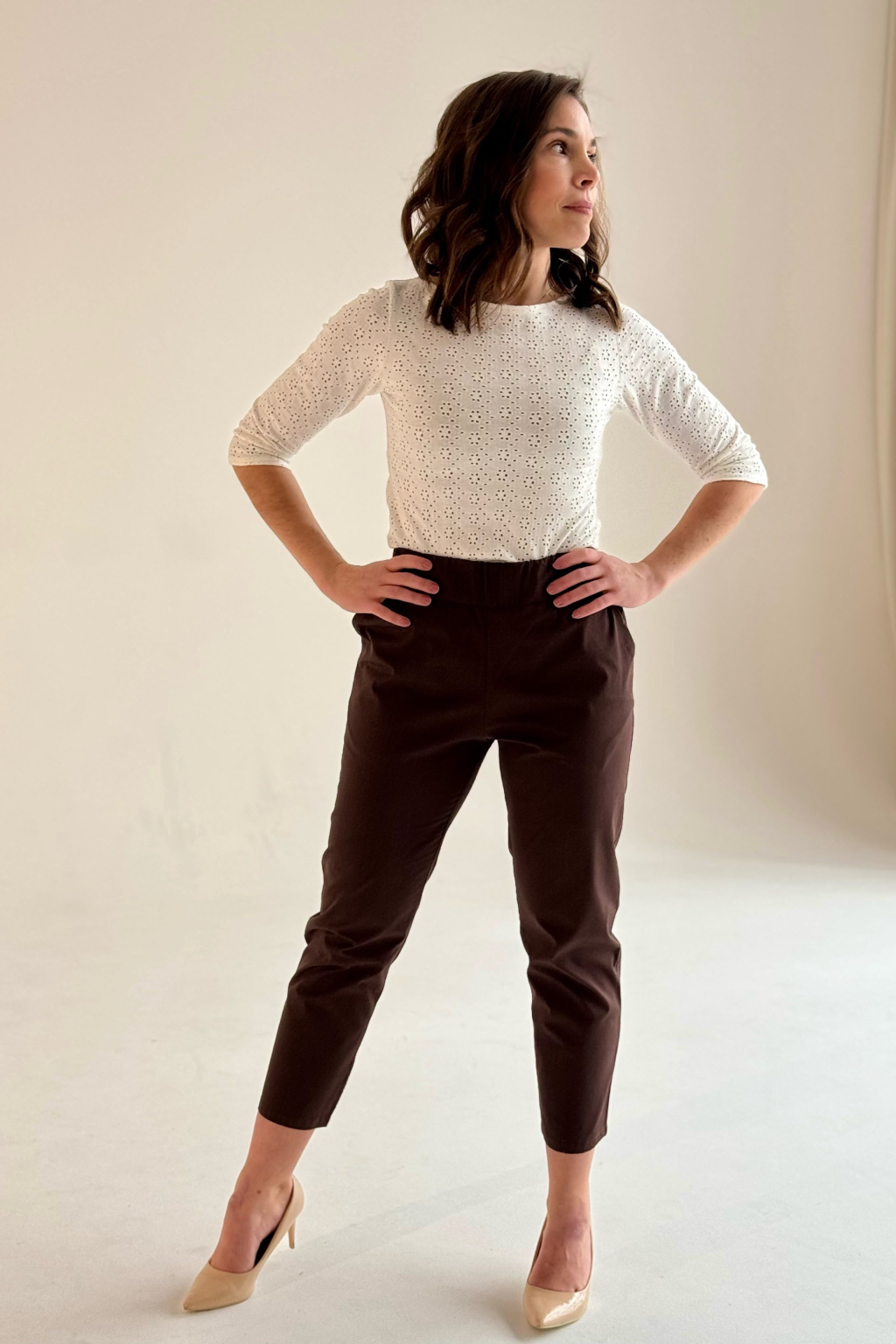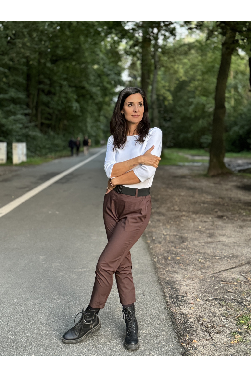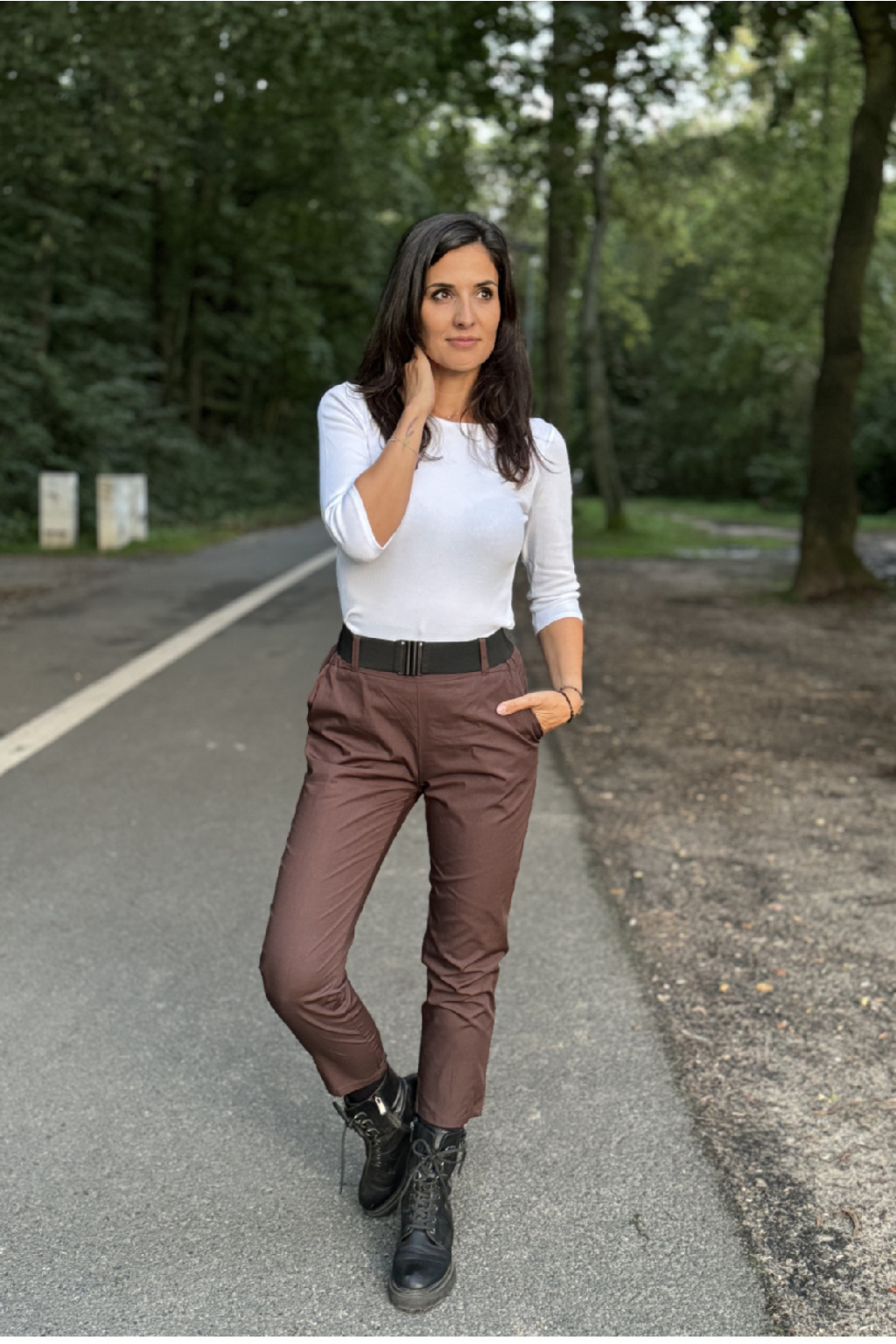 Bio bavlněné kalhoty Lina - hnědá - vel. M - skladem