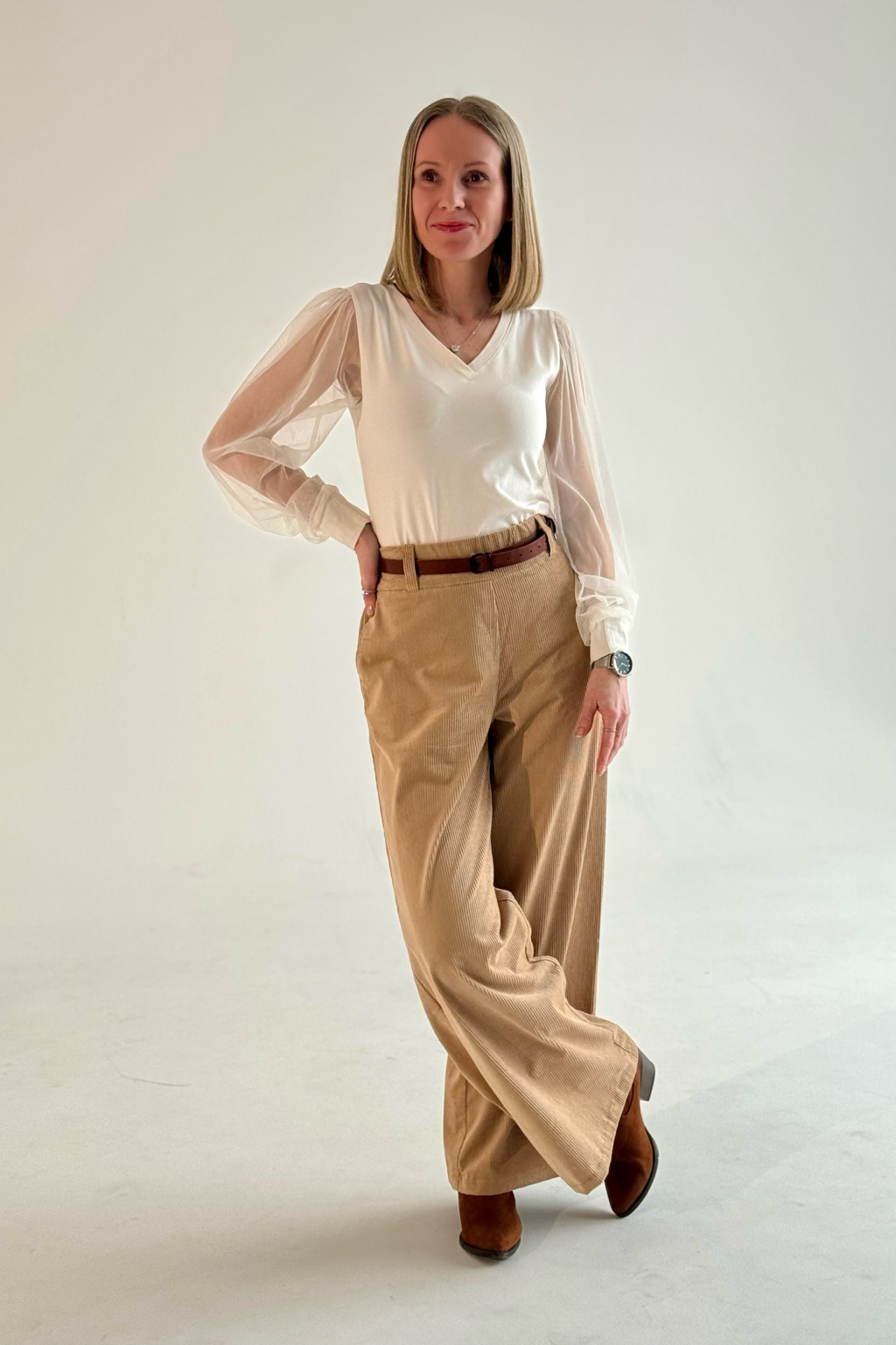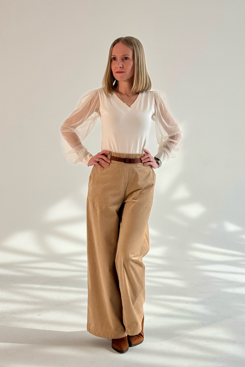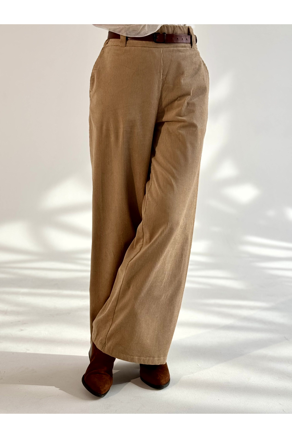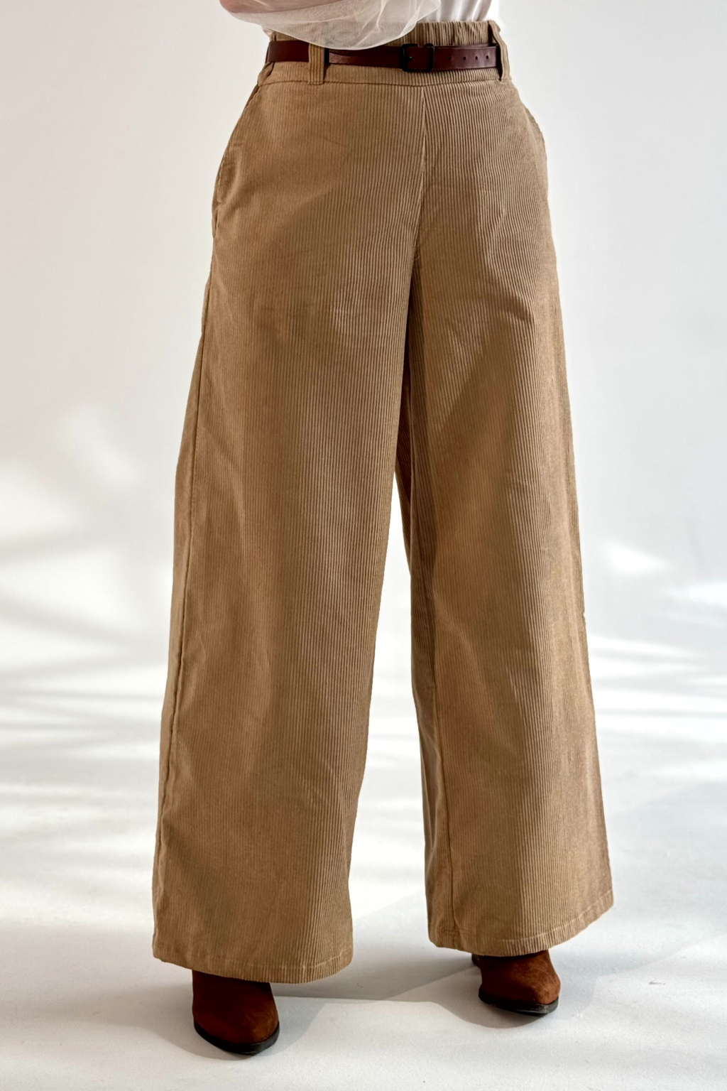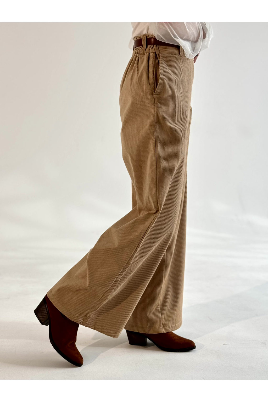 Bio bavlněné manšestrové široké kalhoty - zlatistá písková - vel. XS - skladem