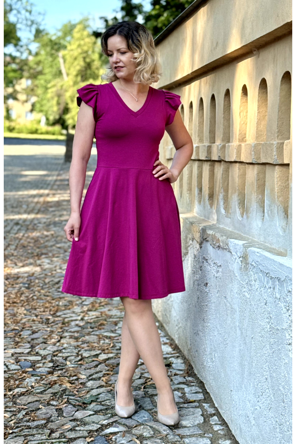 Bio bavlněné šaty Aria - cyklamenová - krátké 105 cm - vel. M - skladem