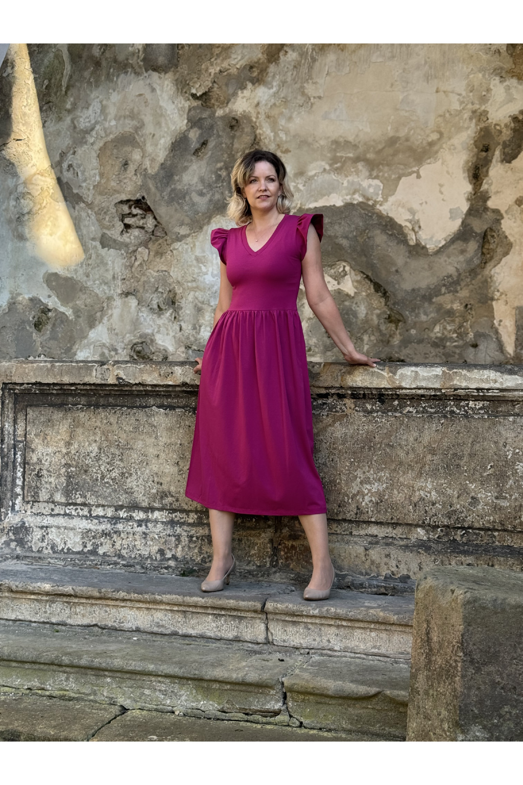 Bio bavlněné šaty Aria - cyklamenová - midi 120 cm - vel. XS - skladem