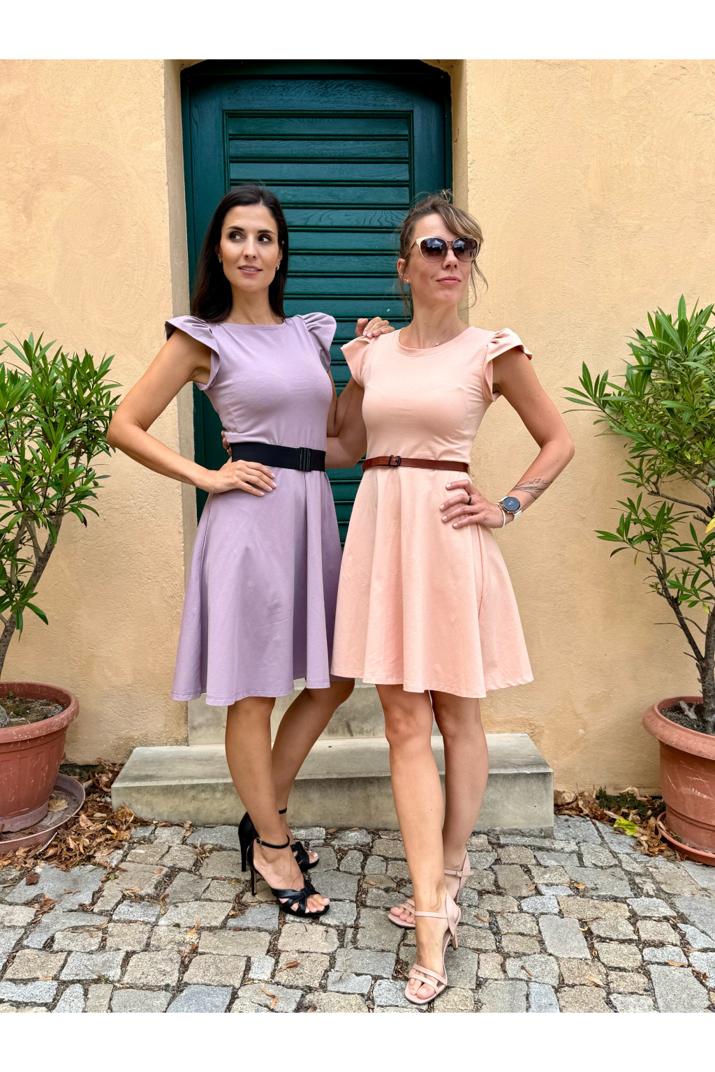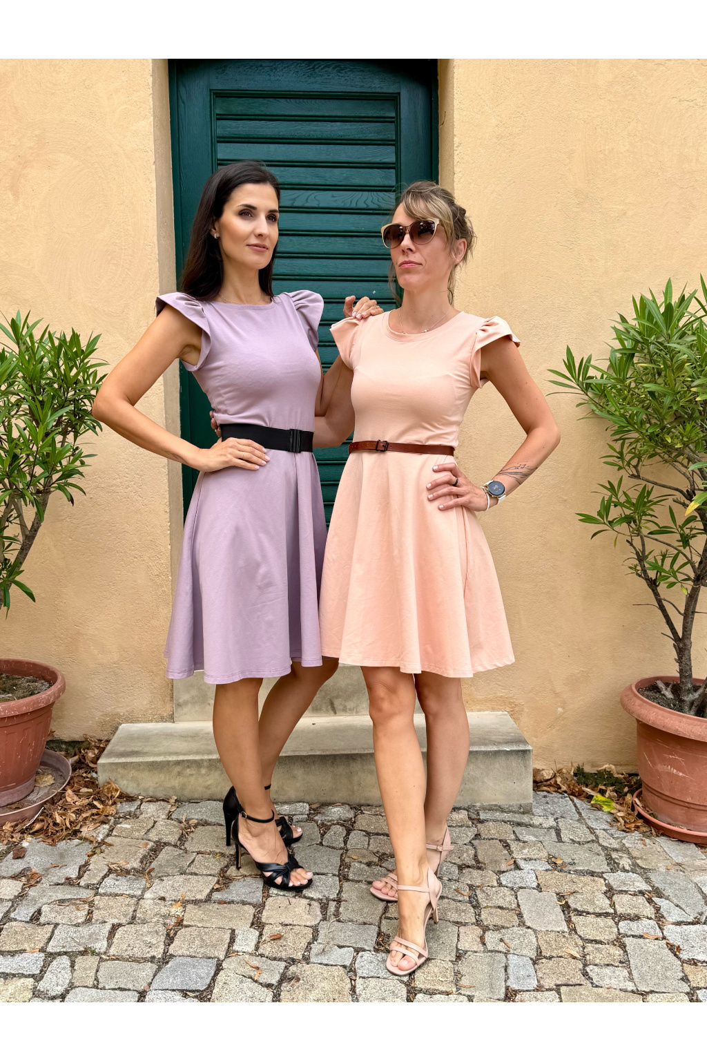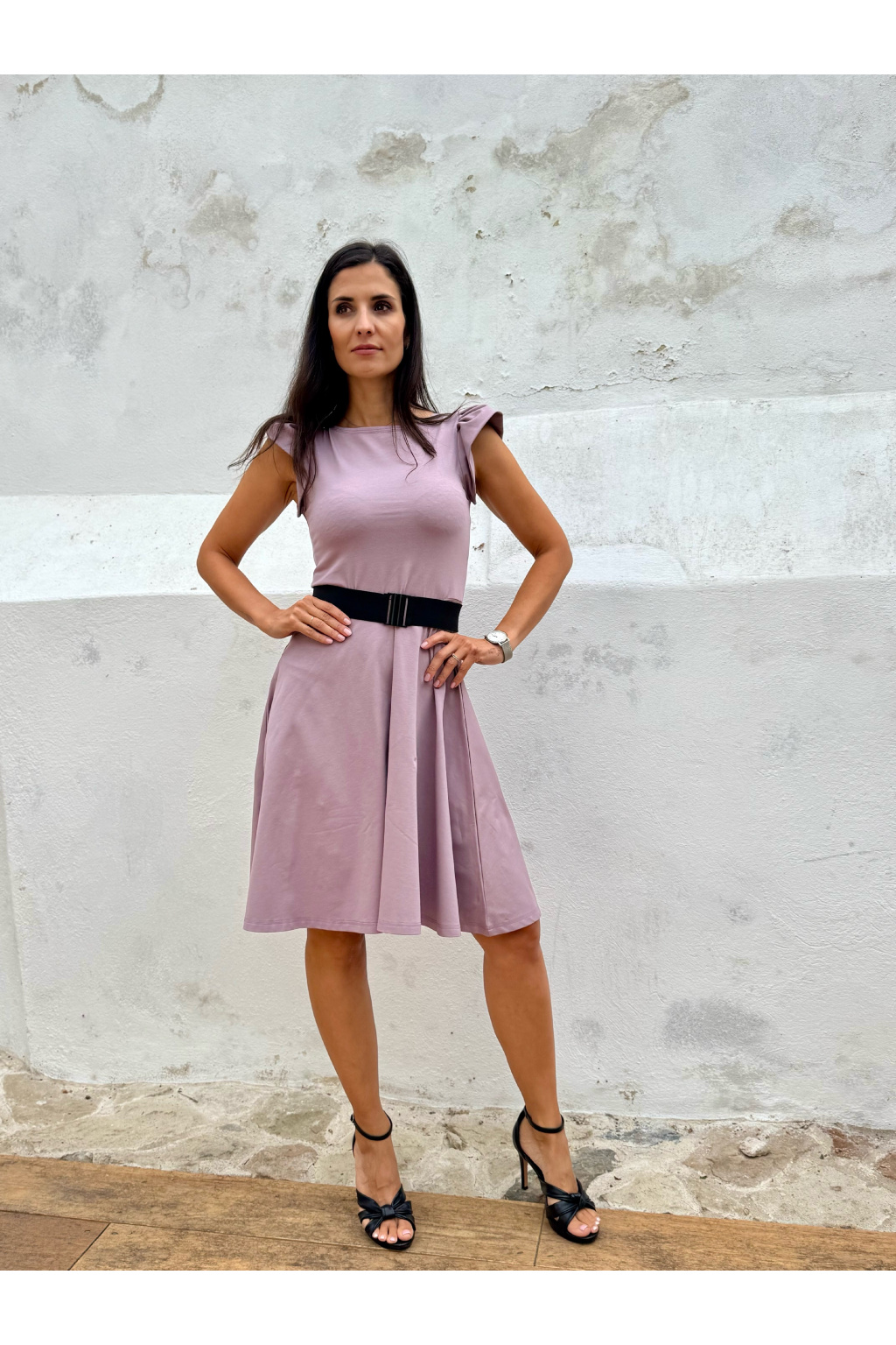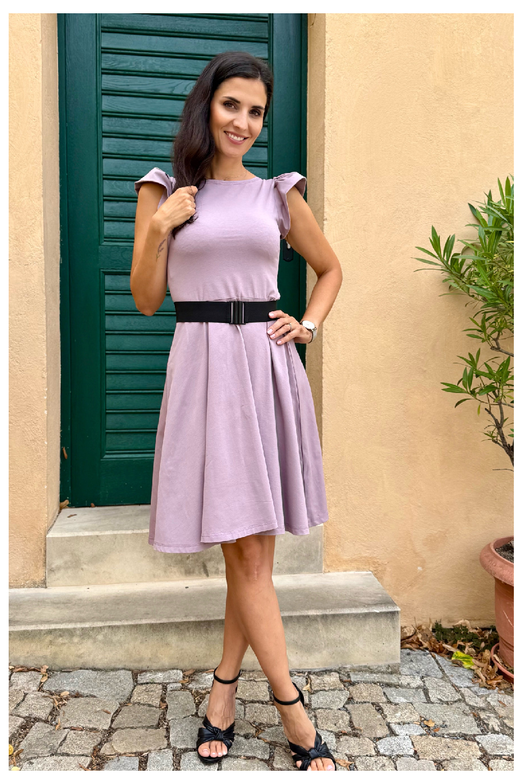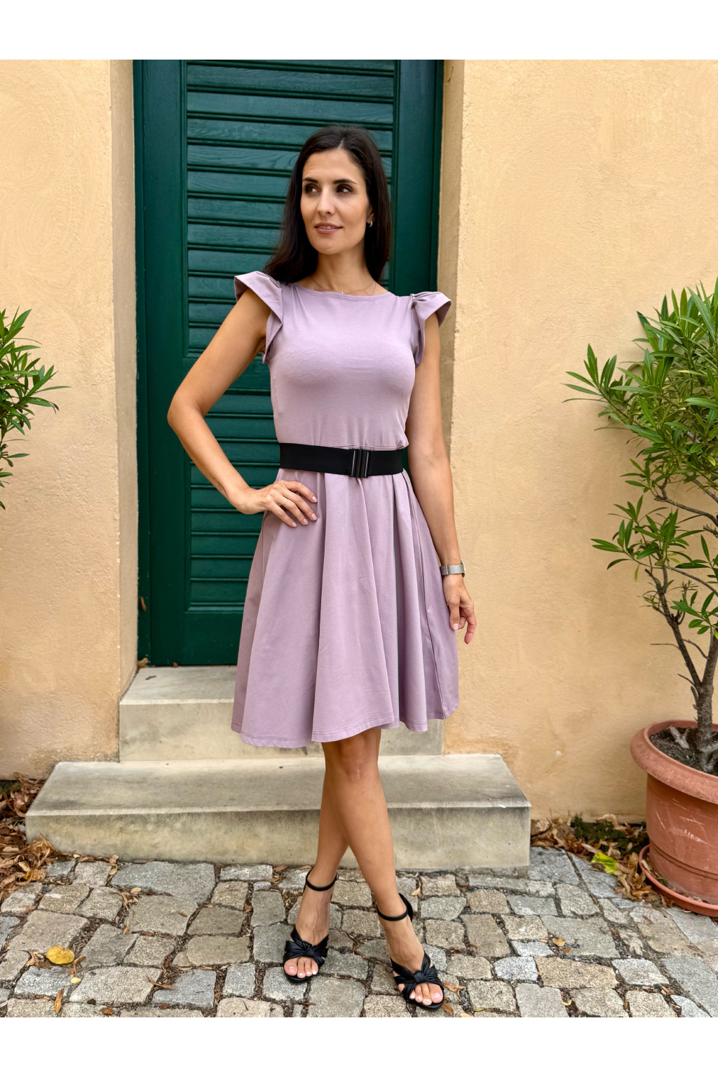 Bio bavlněné šaty Aria - lila - midi 120 cm - vel. M - skladem