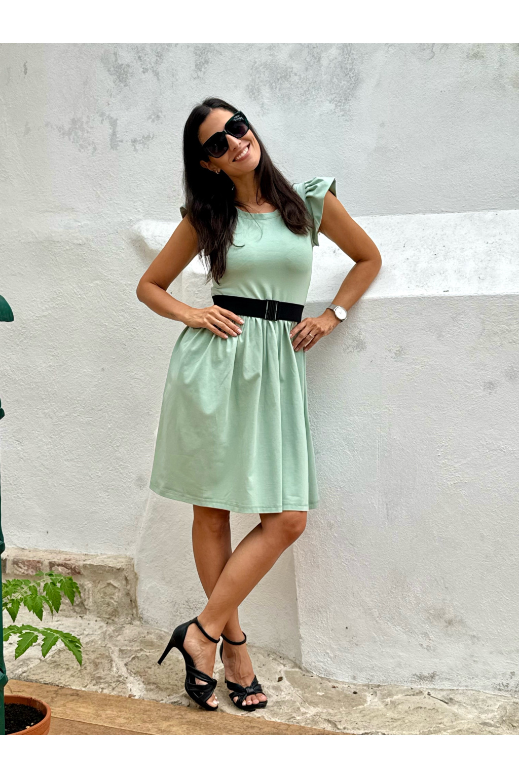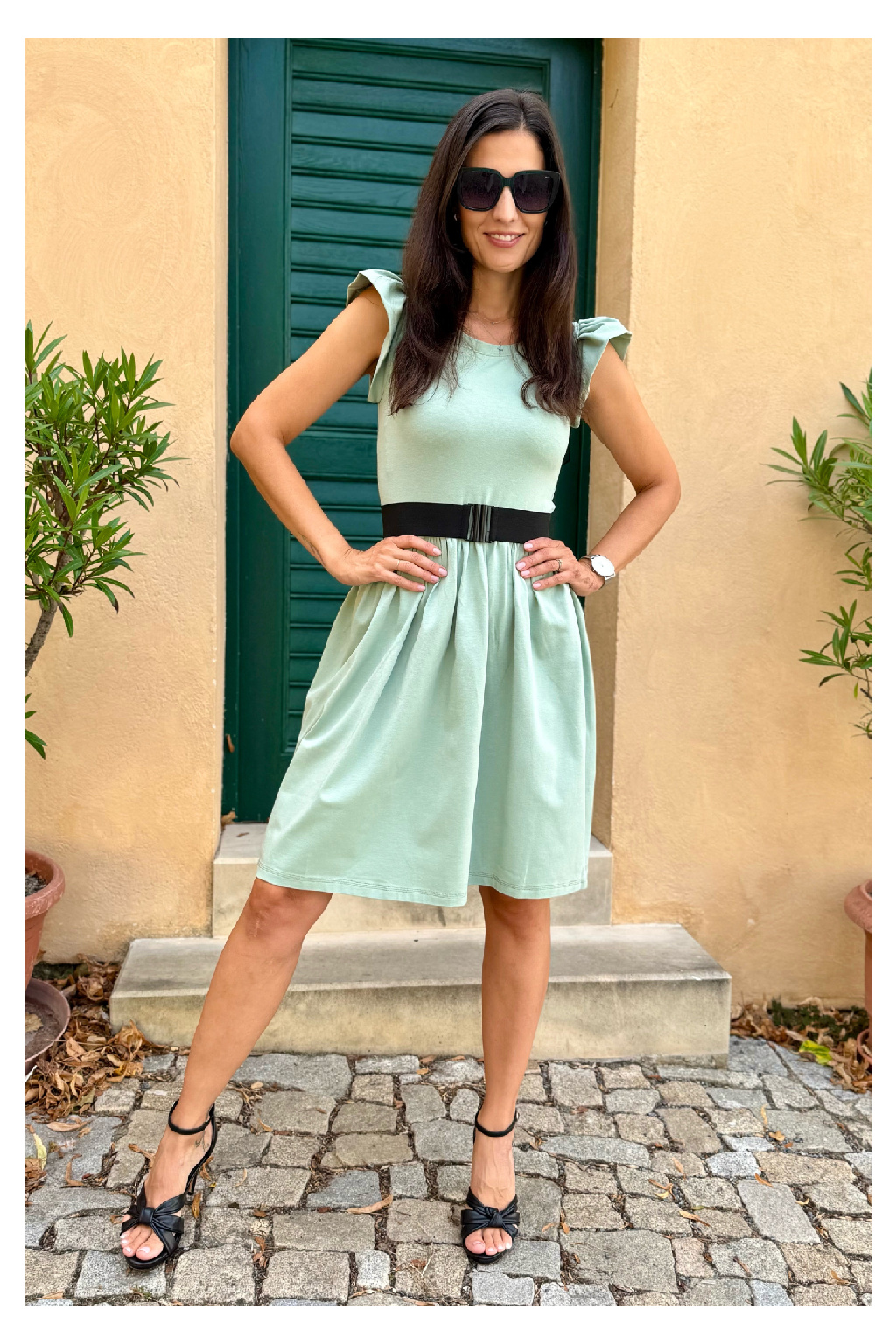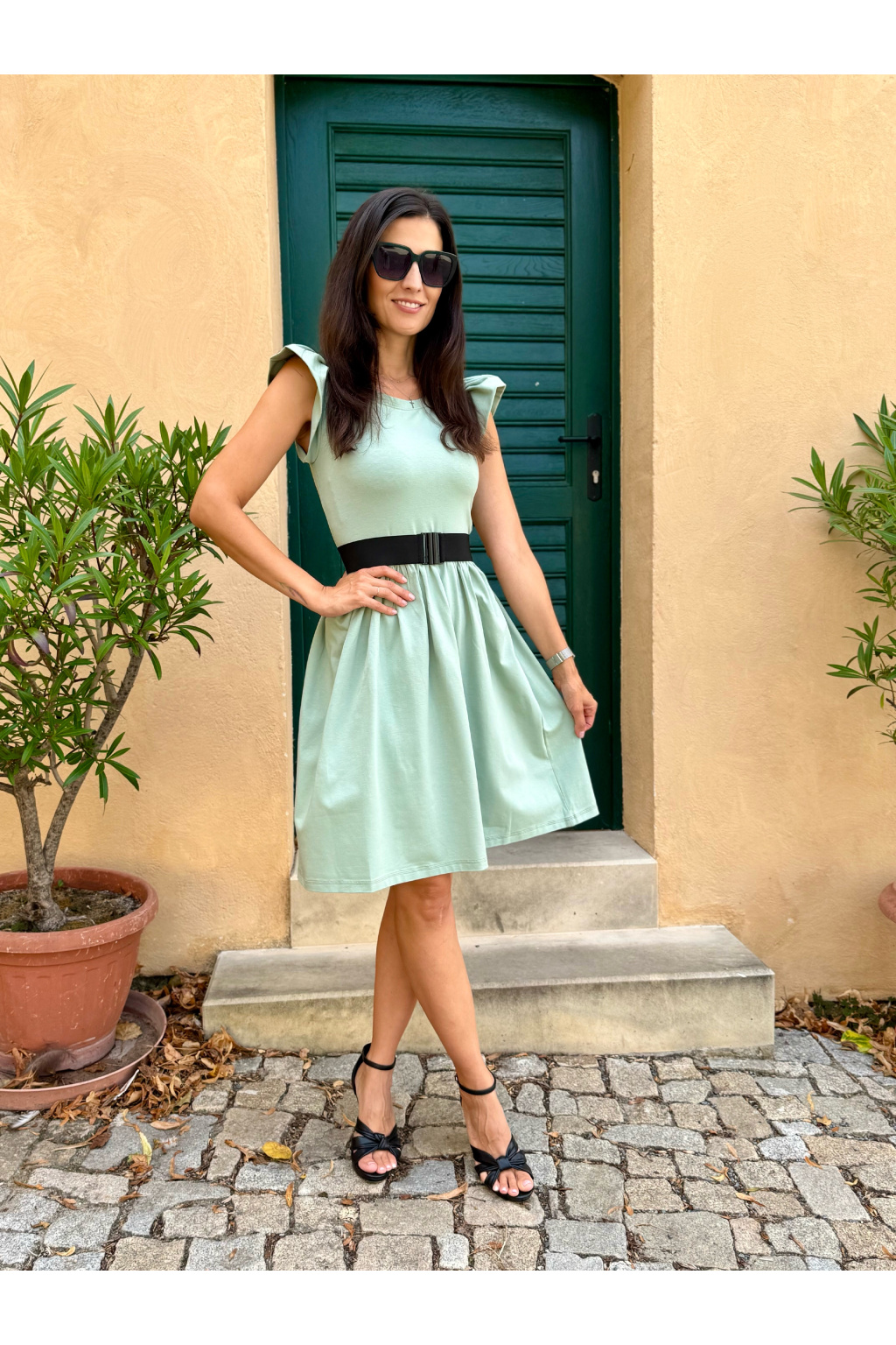 Bio bavlněné šaty Aria - sage green - krátké 95 cm - vel. XS - skladem