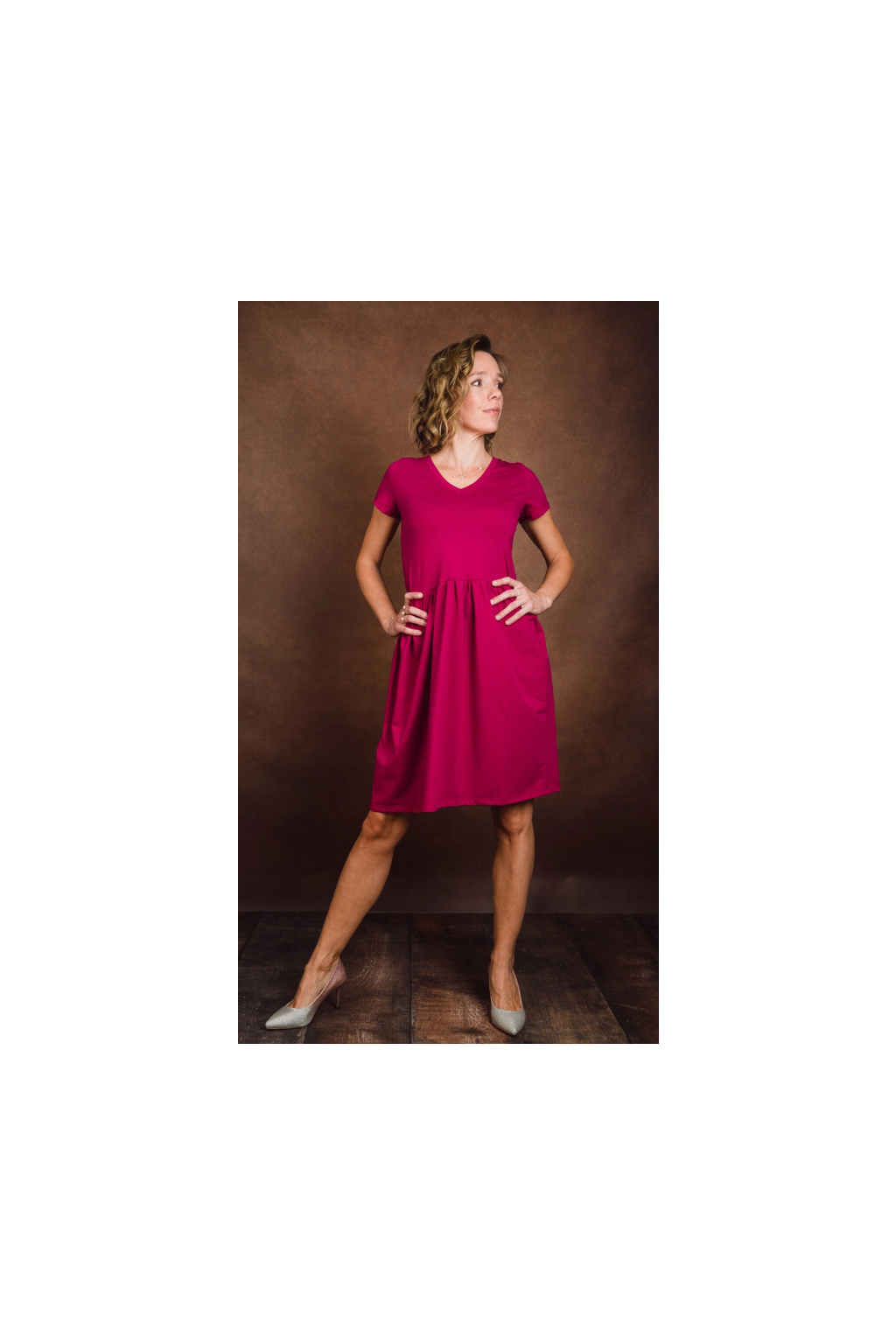 Bio bavlněné šaty Klasik - cyklamenová - krátké 95 cm - vel. S - skladem