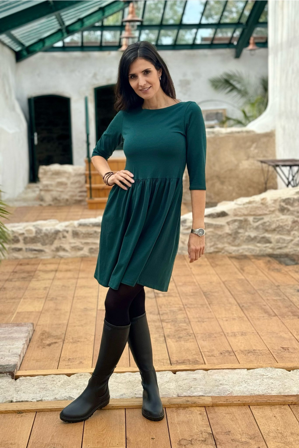 Bio bavlněné šaty Klasik - lahvově zelená - midi 120 cm - vel. M - skladem