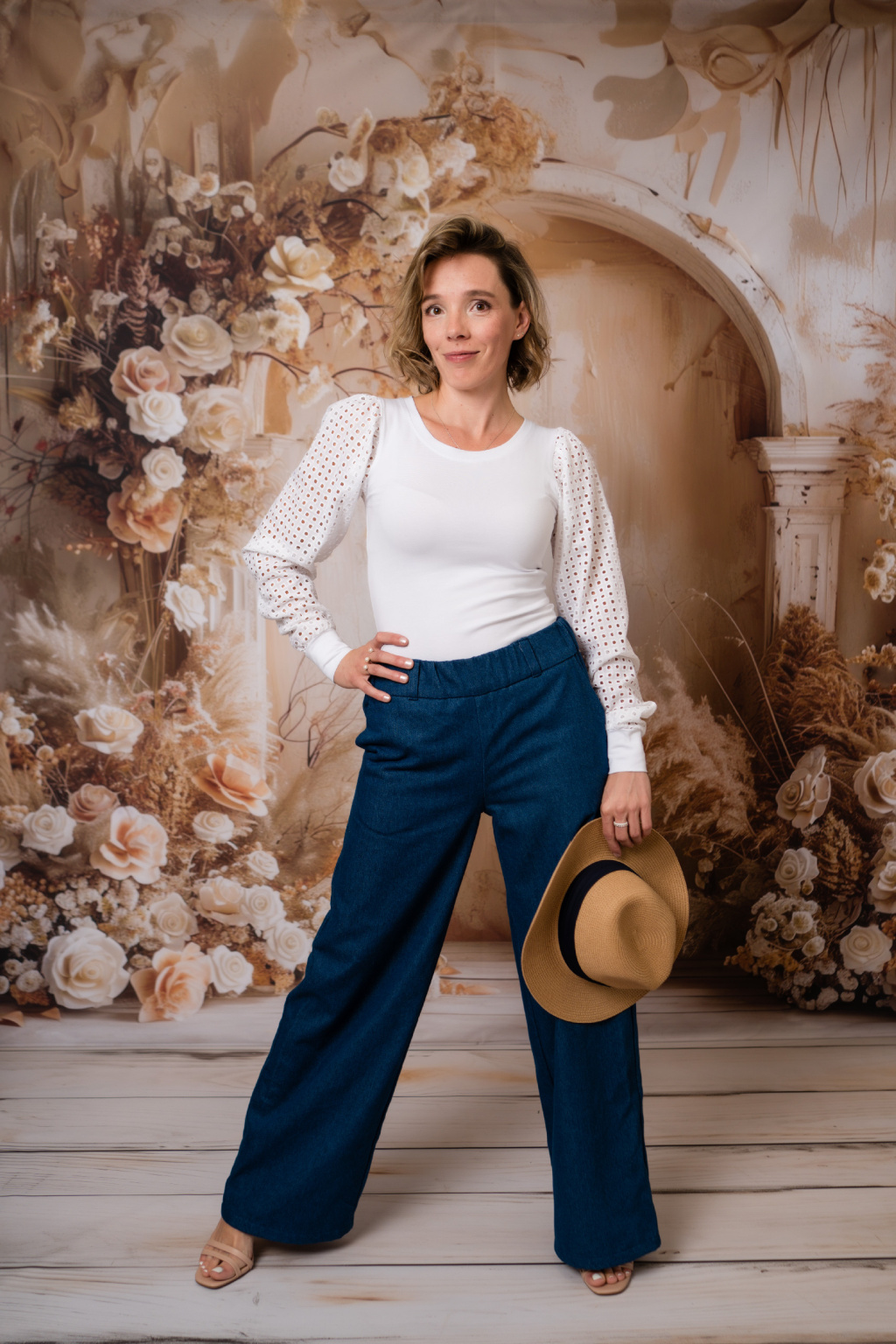 Bio bavlněné široké kalhoty - dlouhé - džínová -vel. S - skladem