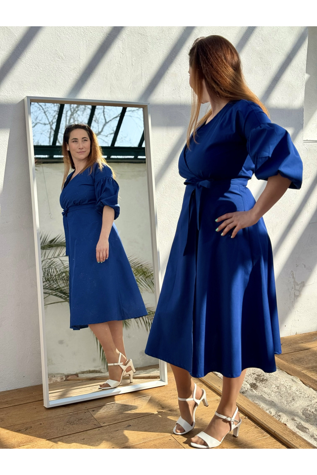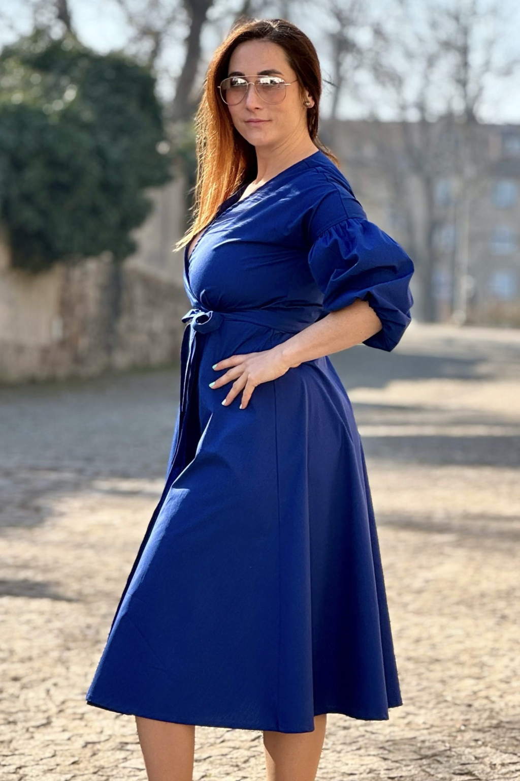 Bio bavlněné zavinovací šaty Mirabela - kobaltová - krátké 100 cm - vel. S - skladem