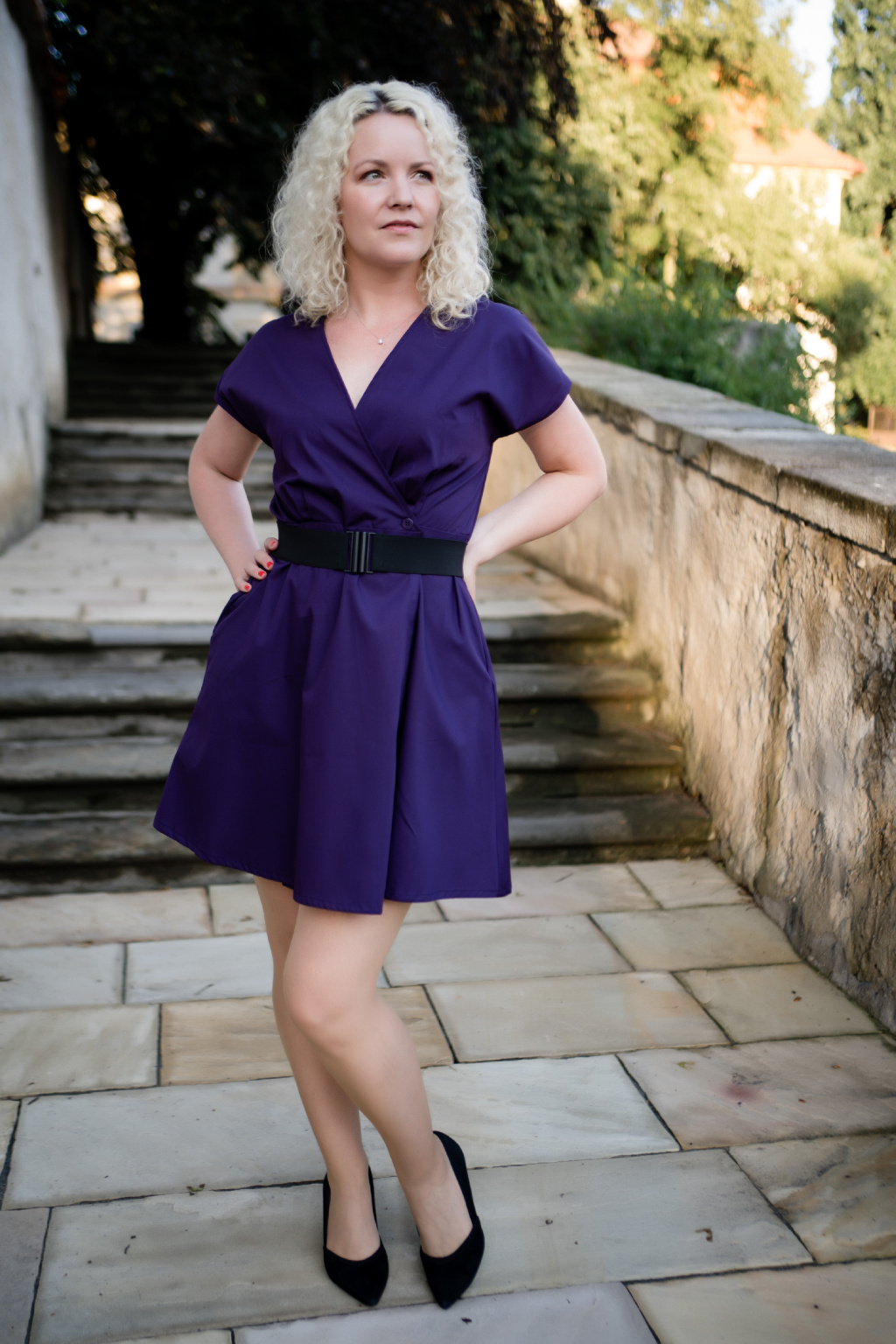 Bio bavlněné zavinovací šaty Mirabela - švestková - midi 110 cm - vel. M - skladem