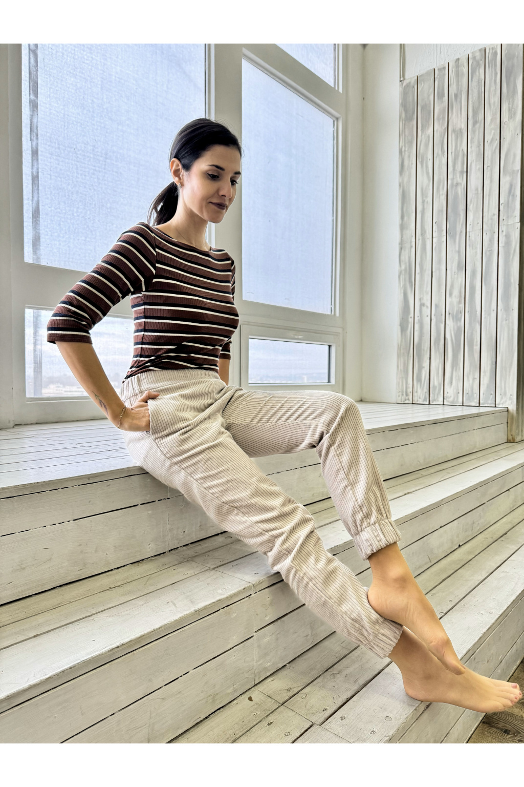 Modelka na fotce má na sobě: tričko vel. XS, lodičkový výstřih, 3/4 rukáv.