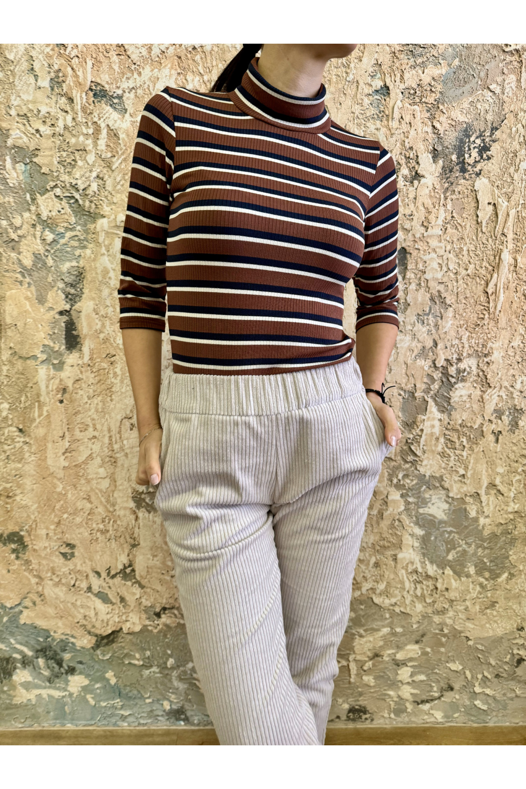 Hnědo-černé proužkované tričko - vel. L - skladem