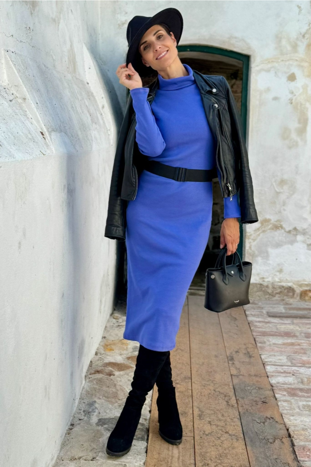 Hrubší úzké žebrované šaty Gill - fialkově modrá - midi 120 cm - vel. XS - skladem
