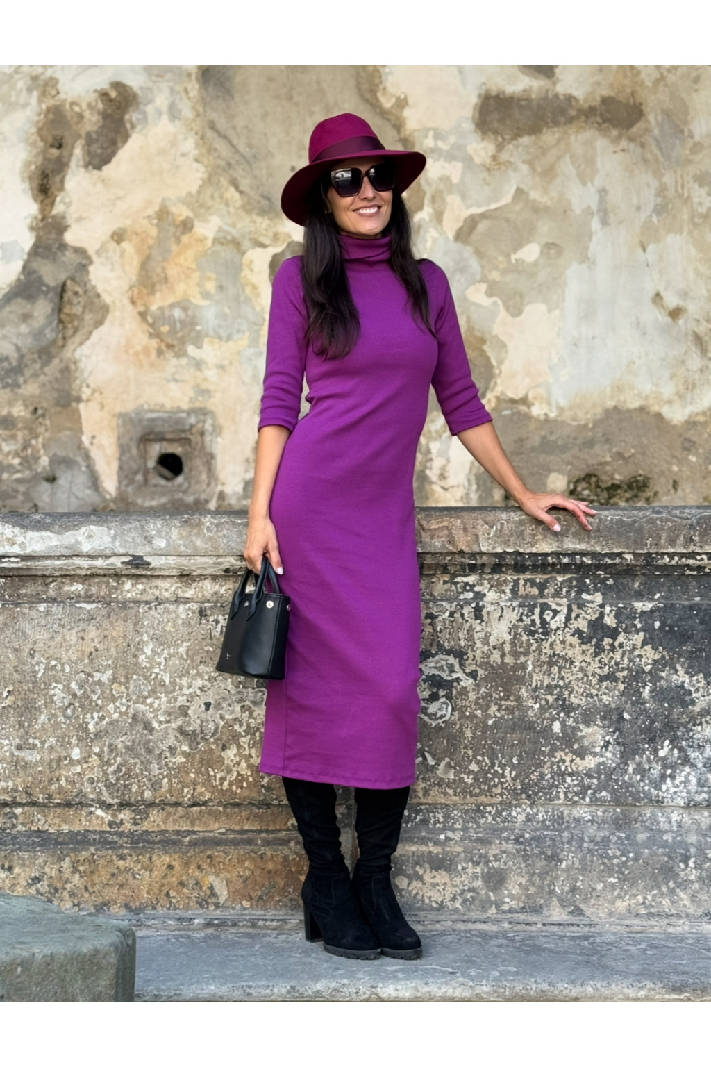 Hrubší úzké žebrované šaty Gill - orchidea - midi 120 cm - vel. XXS - skladem